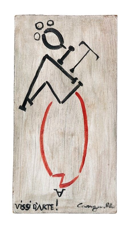 Olio su masonite. cm 60x32. Firmato in basso a destra, titolato in basso a sinistra. Opera successivamente pubblicata nell'edizione Caffeconcerto - alfabeto a sorpresa di Cangiullo per la sperimentazione del Paroliberismo Futurista. Parte Ia N. 8.