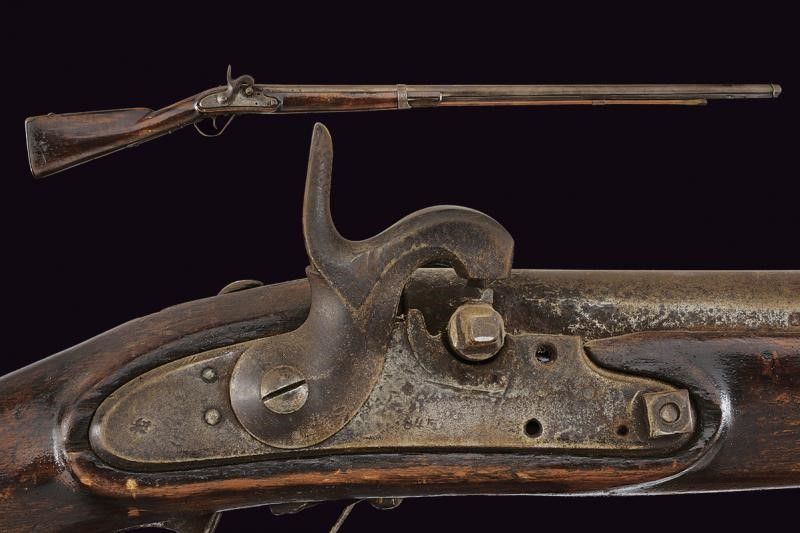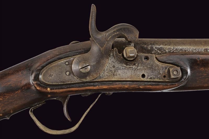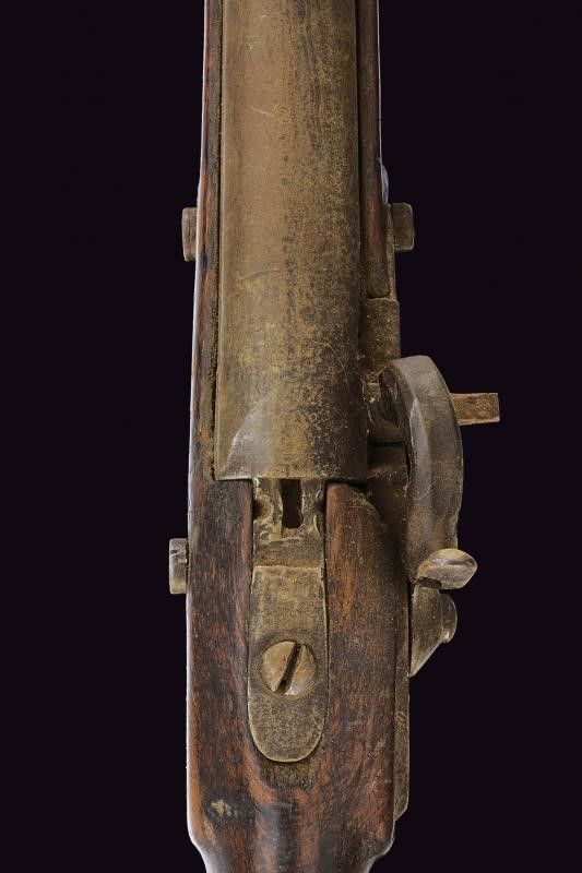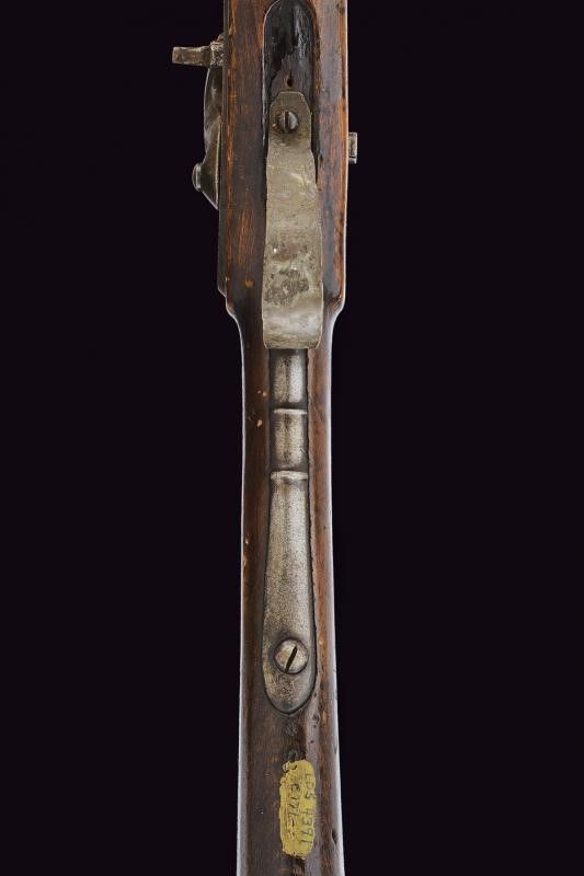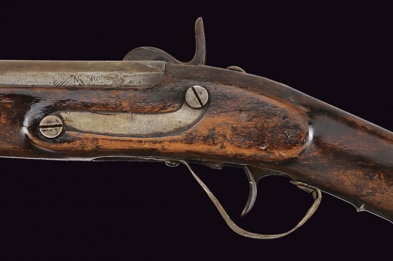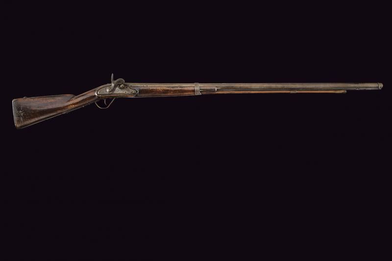 Austria, lunghezza 146 cm. Metà del XIX Secolo Lunga canna liscia, la base marcata con punzoni, fra cui 'N' e data '848'; mirino, cal. 18 mm. Batteria ridotta a luminello, la cartella marcata '845' e con punzone imperiale austriaco. Mezza cassa in legno con fornimenti in ferro. Danni e restauri generali. Questo lotto è importato da un Paese extra UE e comporta una tassazione aggiuntiva rispetto alla commissione della casa d'aste e alla tassa sul servizio. Di conseguenza, la commissione totale, comprensiva di tutte le tasse, ammonta al 35%.