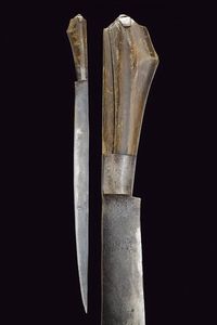 Guam, lunghezza 63.3 cm. 1900 circa Lunga lama dritta a un filo. Impugnatura faccettata in corno, ghiera e cappetta [..]