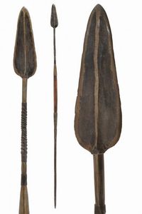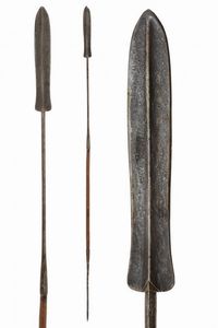 Congo, lunghezza 179 cm. Fine del XIX Secolo Cuspide a due fili con nervatura centrale. Lunga gorbia cilindrica, [..]