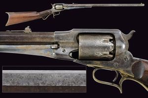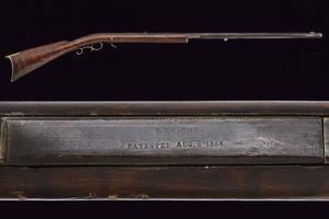 USA, lunghezza 139 cm. 1860 circa Canna ottagonale con mirino, cal. 8 mm. Dietro alla canna nella parte inferiore [..]