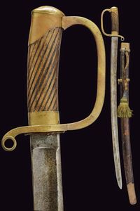 Toledo, lunghezza 98 cm. Lama piatta, curva, a un filo e controfilo; il tallone numerato e con marca 'ARTILLERIA [..]
