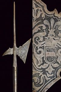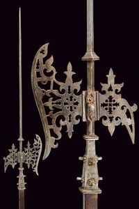 Europa centrale, lunghezza 241.5 cm. Cuspide, scure e becco riccamente incisi con busto, data '1615' e motivi [..]