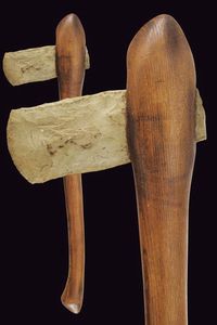 Scandinavia, lunghezza 62 cm. Testa in ferro con lunga scure incurvate a taglio quasi dritto. Breve martello rettangolare. [..]