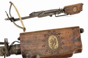 Germania, lunghezza 57 cm. Teniere in ferro, con leva al dorso munita di alzo; il calcio in legno inciso a delineature [..]