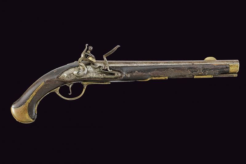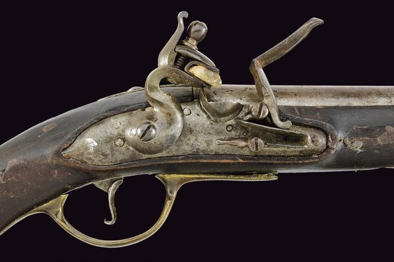 Europa, lunghezza 51.5 cm. Canna liscia tonda, la base con punzone 'Z' sotto corona, mirino, cal. 17 mm. Batteria a pietra focaia con cartella tondeggiante. Cassa intera in legno, diversi restauri. Fornimenti in ottone. Bacchetta in legno. Russia ? Questo lotto è importato da un Paese extra UE e comporta una tassazione aggiuntiva rispetto alla commissione della casa d'aste e alla tassa sul servizio. Di conseguenza, la commissione totale, comprensiva di tutte le tasse, ammonta al 35%.