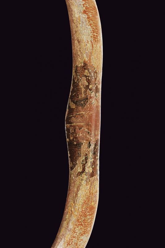 Persia, larghezza 46 cm. XVII/XVIII secolo In legno di forma ovale con estremità munite di scanalature per fissare la corda. La superficie con resti di pittura. Questo lotto è importato da un Paese extra UE e comporta una tassazione aggiuntiva rispetto alla commissione della casa d'aste e alla tassa sul servizio. Di conseguenza, la commissione totale, comprensiva di tutte le tasse, ammonta al 35%.