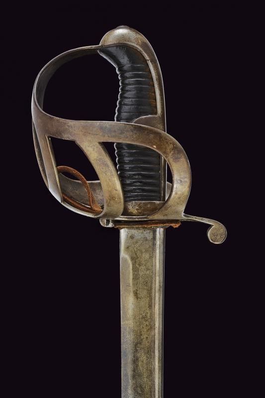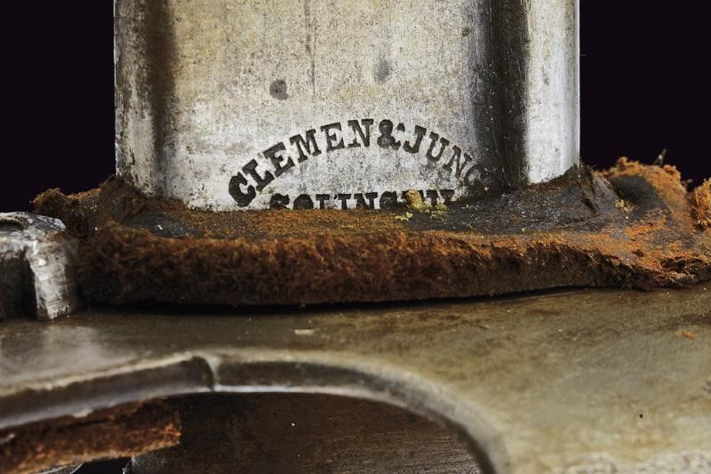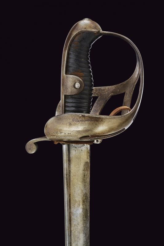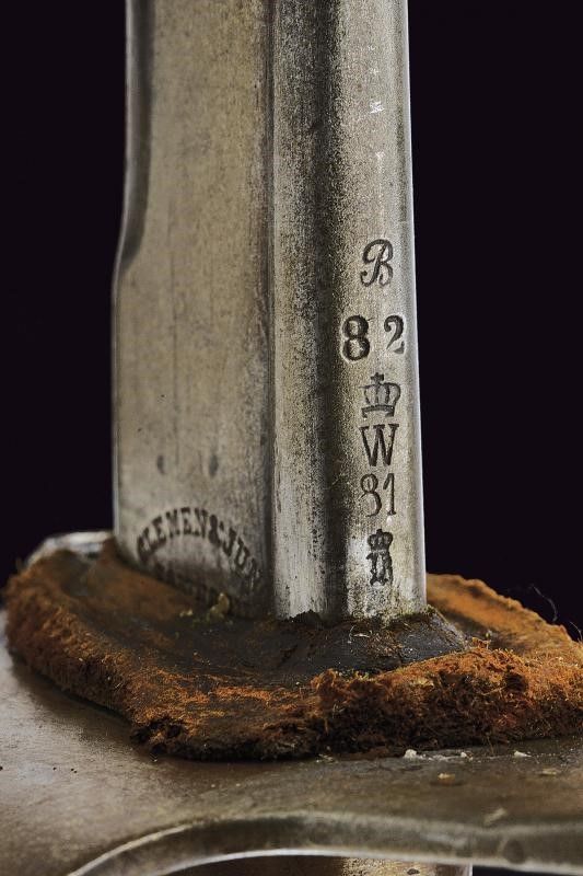 Prussia, lunghezza 102 cm. Lama curva a un filo con yelman. Base marcata 'CLEMEN & JUNG SOLINGEN'. Fornimento in ferro marcato '21. T. P. 3. 79.' Insieme con un fodero francese in ferro a una campanella, vari punzoni. Questo lotto è importato da un Paese extra UE e comporta una tassazione aggiuntiva rispetto alla commissione della casa d'aste e alla tassa sul servizio. Di conseguenza, la commissione totale, comprensiva di tutte le tasse, ammonta al 35%.