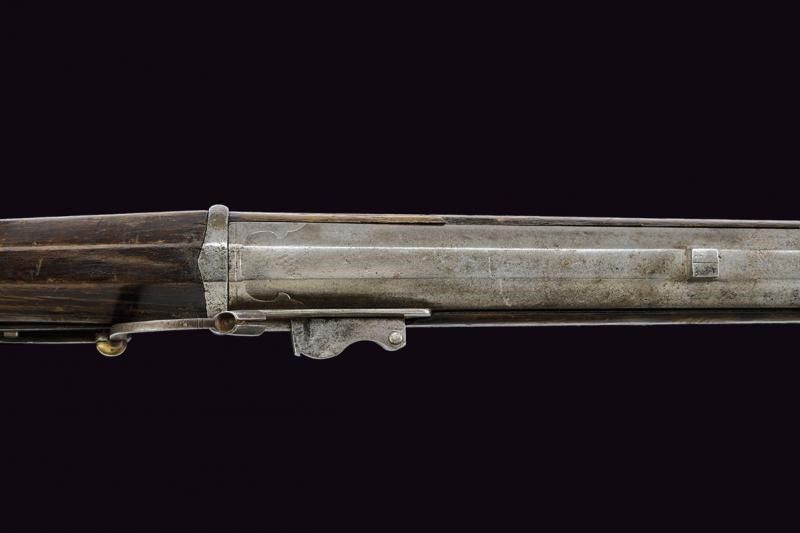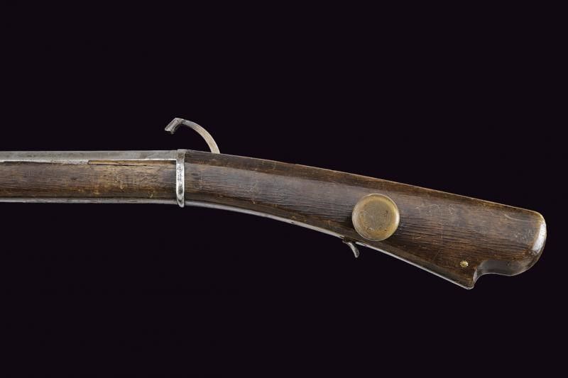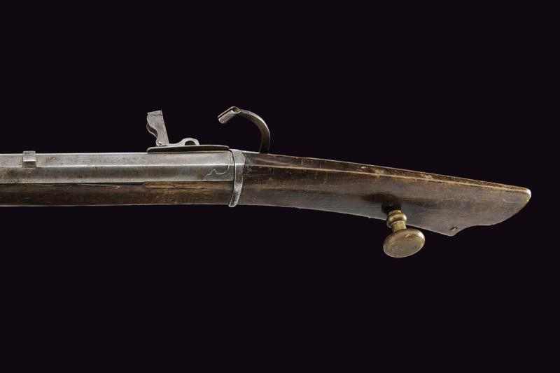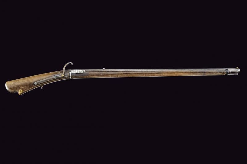 Prima metà del XIX Secolo Canna ottagonale liscia, base leggermente intagliata, alzo in ferro, la volata leggermente strombata e con mirino in ottone, cal. 14 mm. Laterale scodellino con copriscodellino e parascintille. Cassa intera in legno (manca il perno per fermare una vite nella piastra, ora tenuta da una chiusura sostitutiva). Bacchetta in ferro. Questo lotto è importato da un Paese extra UE e comporta una tassazione aggiuntiva rispetto alla commissione della casa d'aste e alla tassa sul servizio. Di conseguenza, la commissione totale, comprensiva di tutte le tasse, ammonta al 35%.