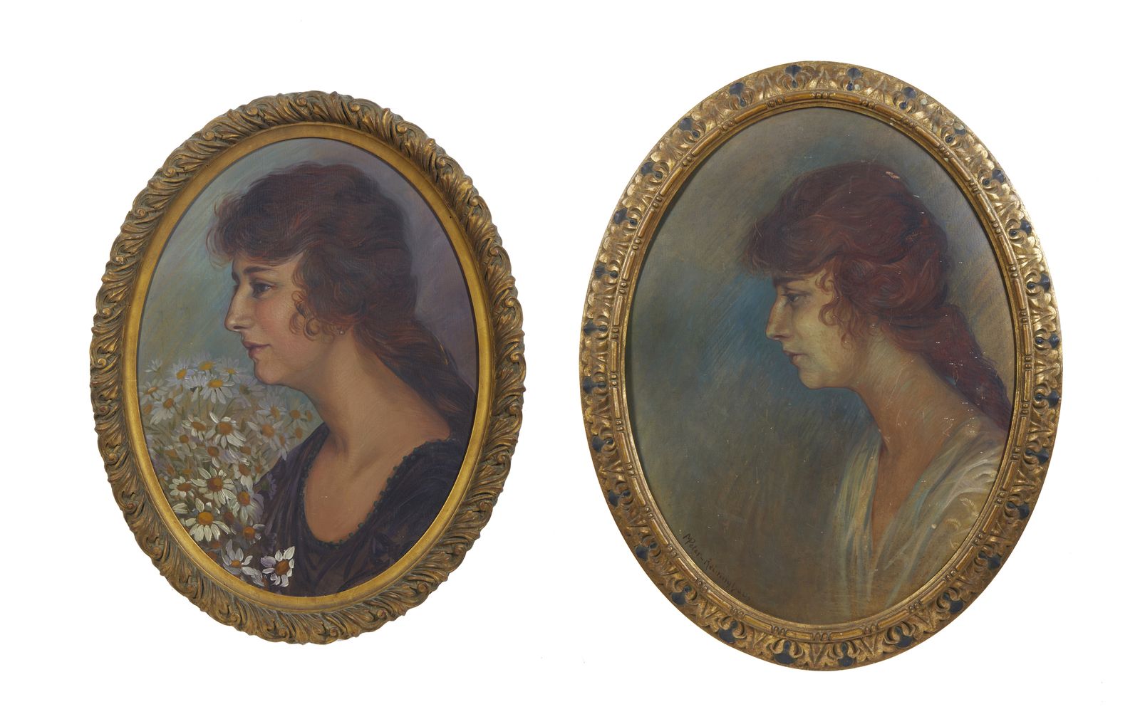 Dimensioni altro dipinto: 59x44,5 cm.Uno dei due dipinti firmato in basso a sinistra.