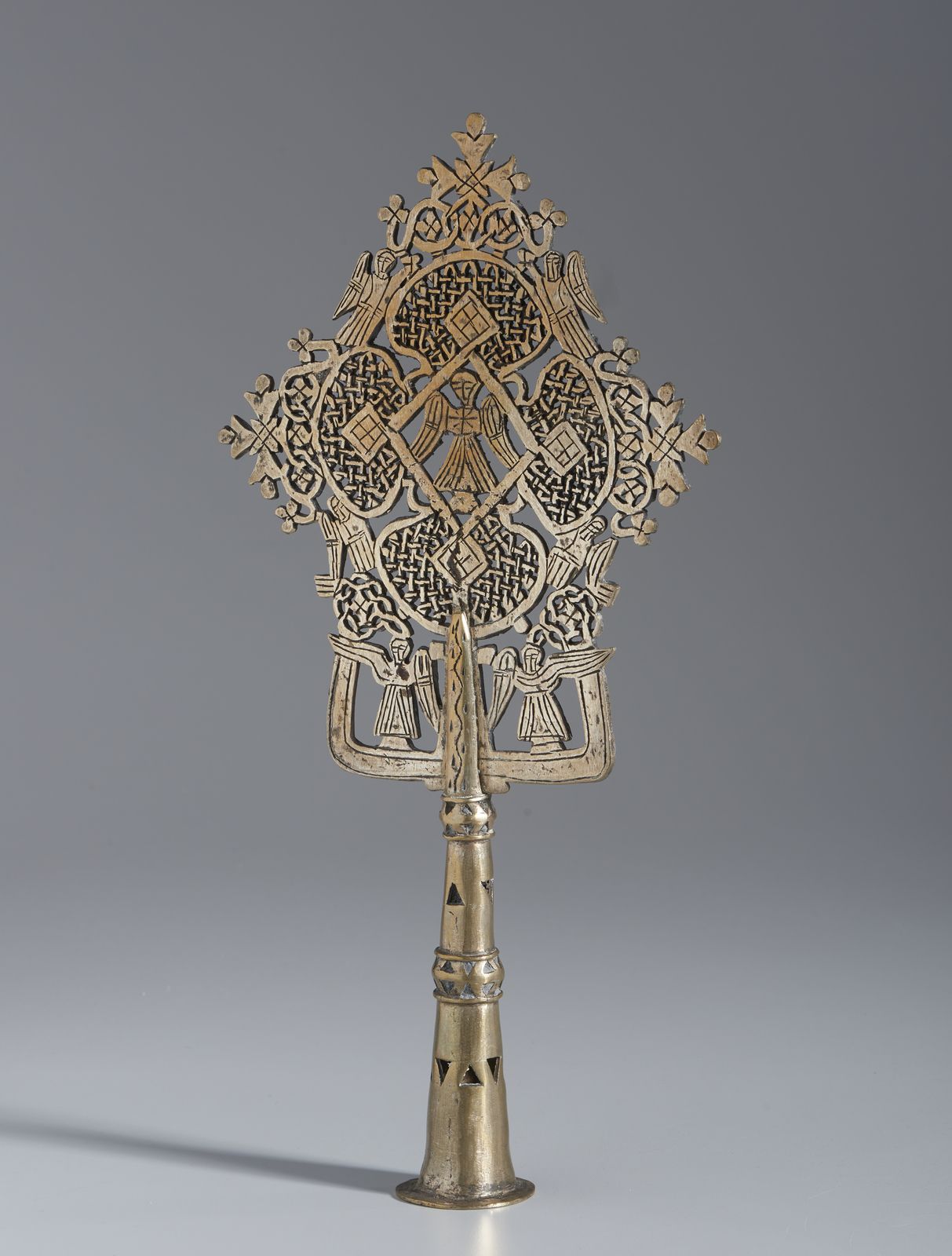 Croce processionale copta in metallo argentato e inciso