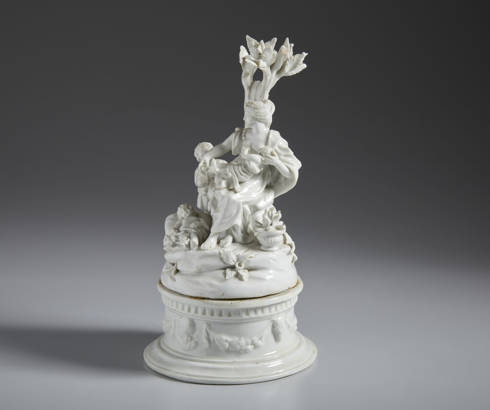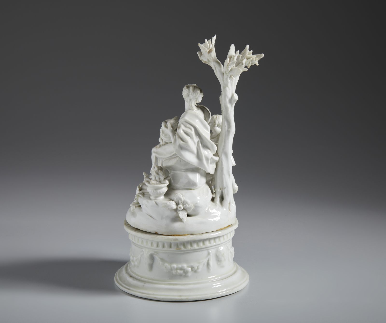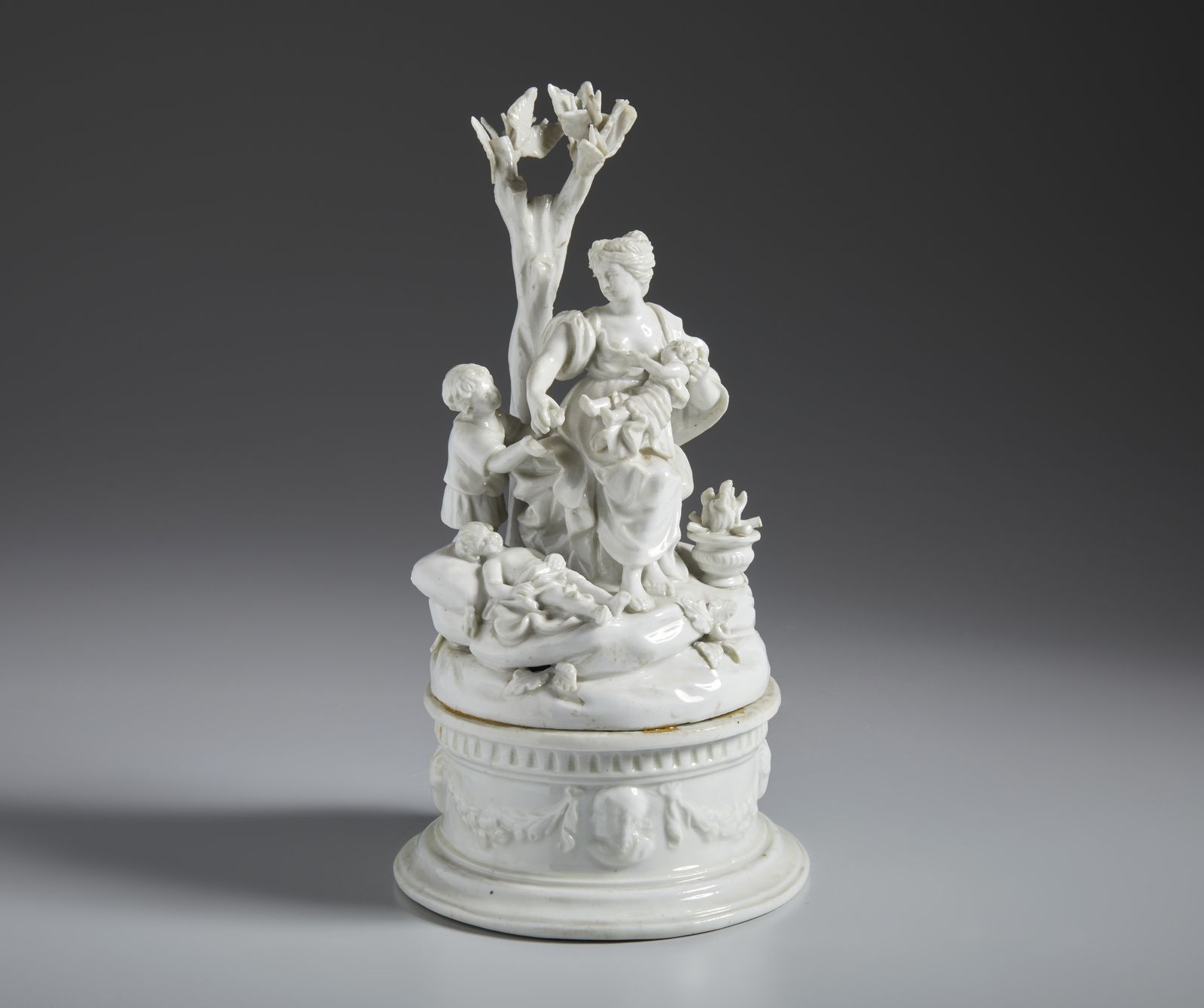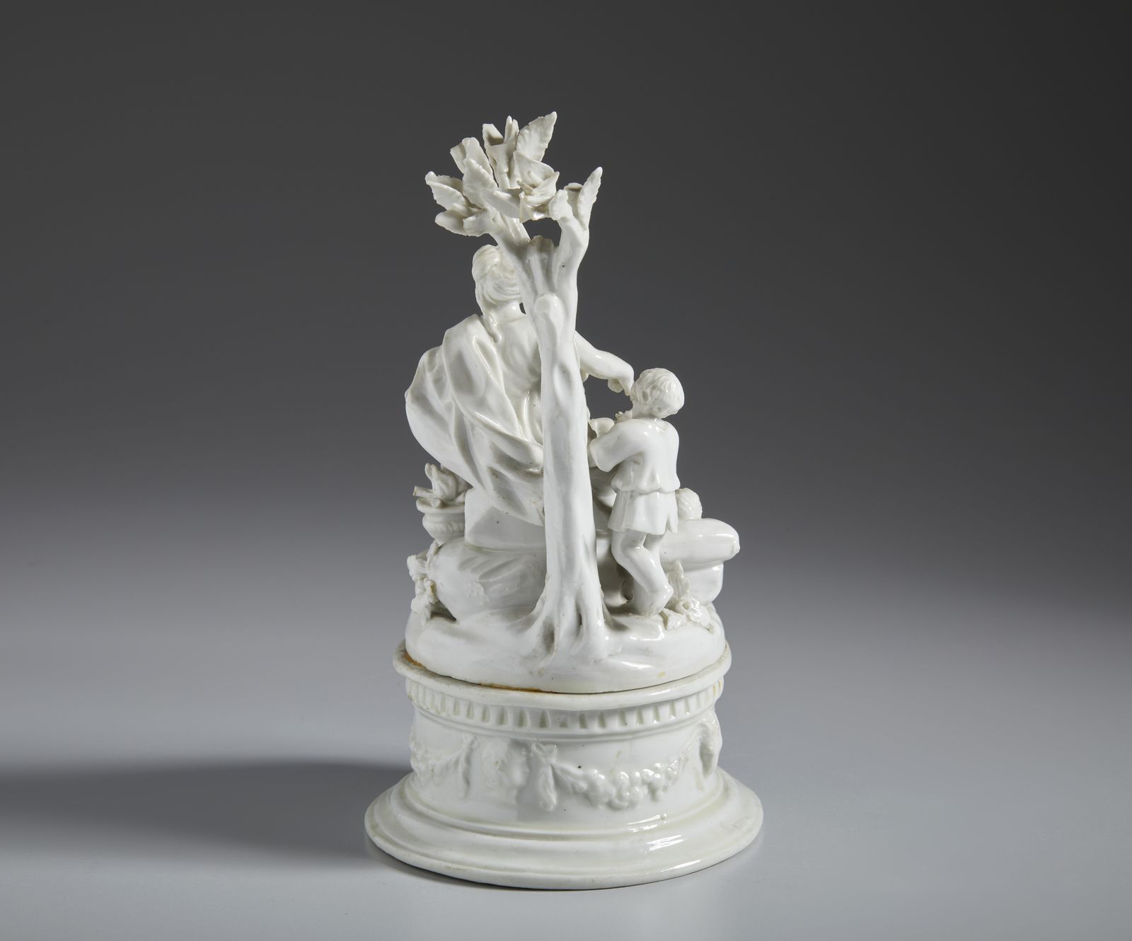 Gruppo in porcellana bianca raffigurante una madre con i figli in una paesaggio [..]