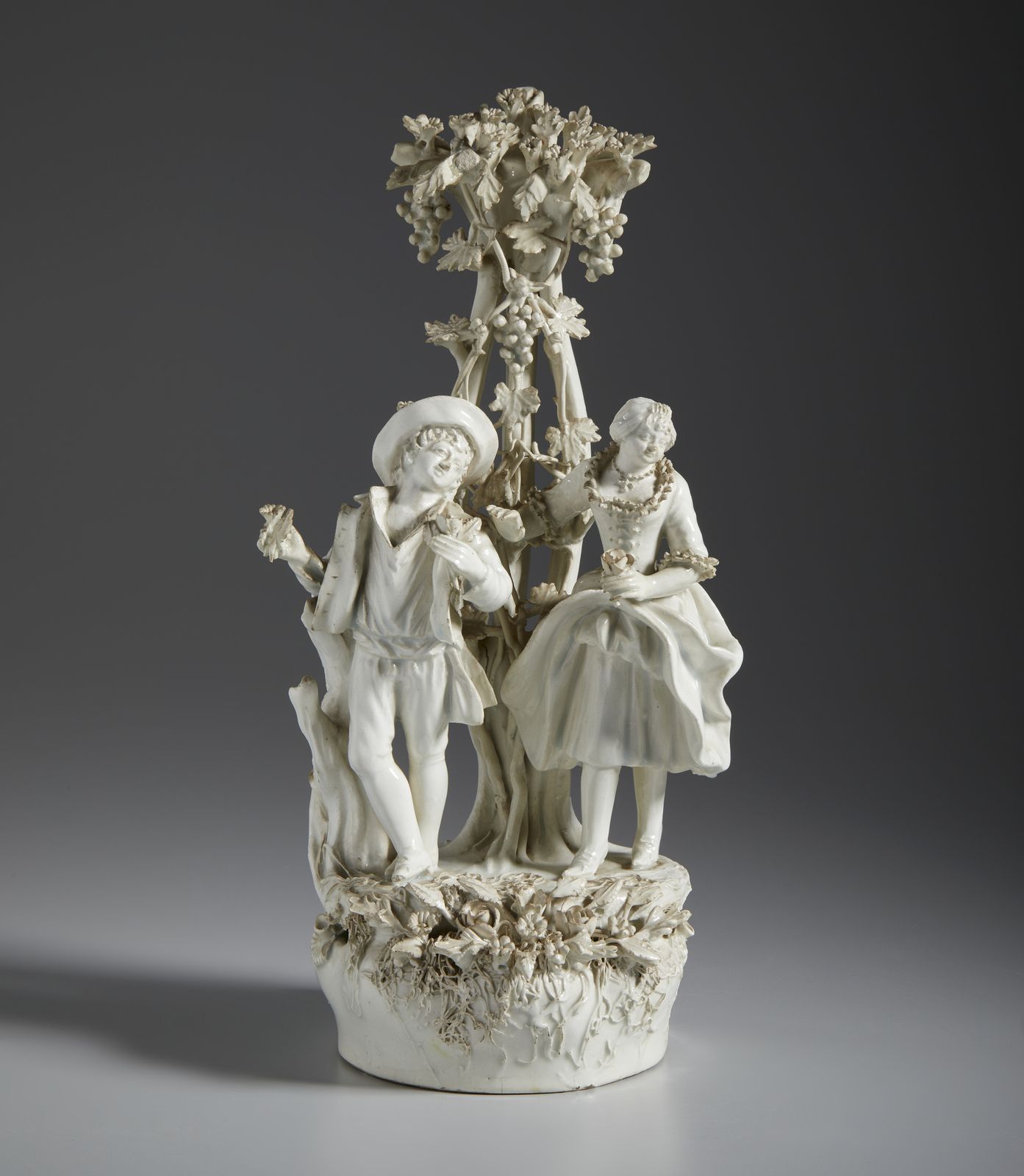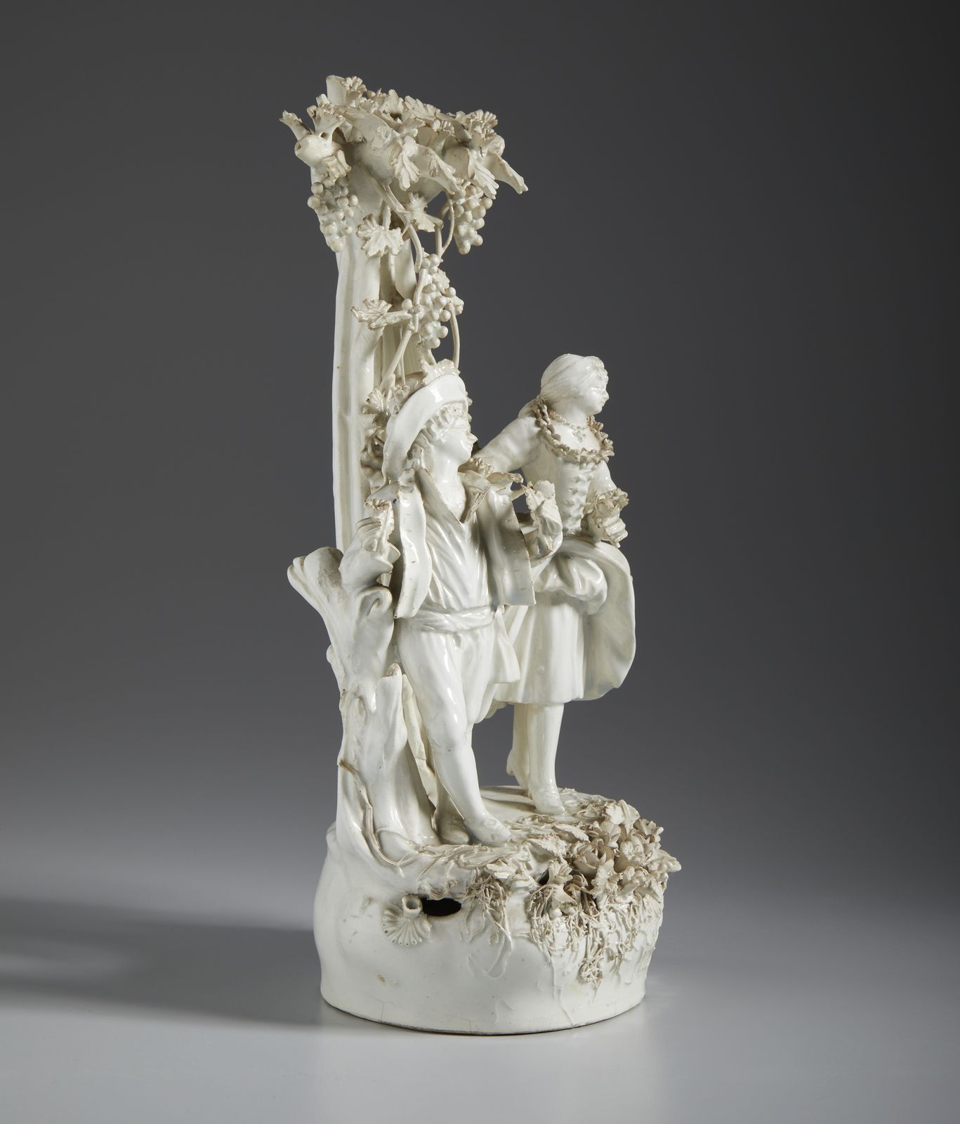 Gruppo in terraglia smaltata raffigurante una coppia galante sotto un albero di [..]