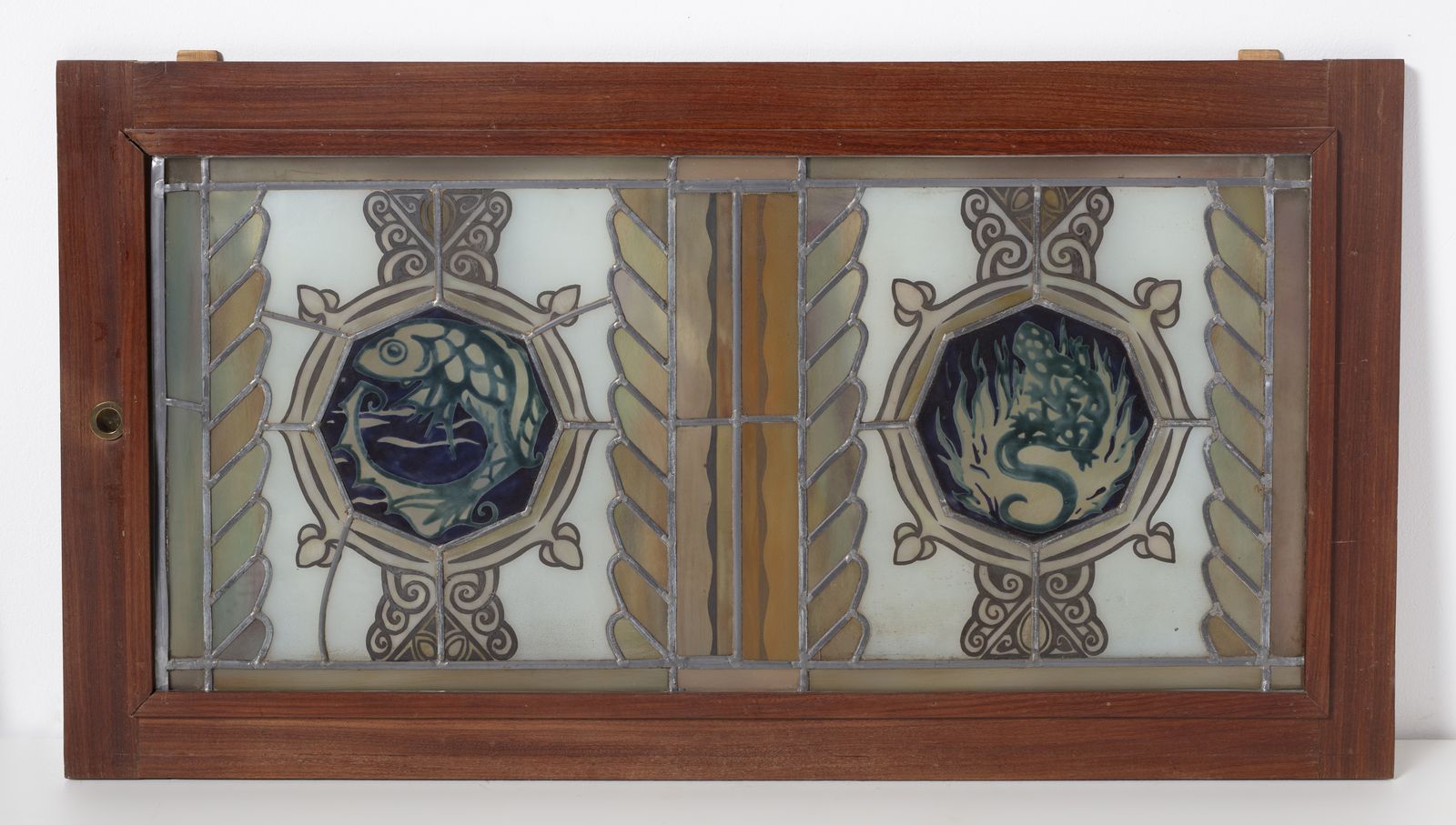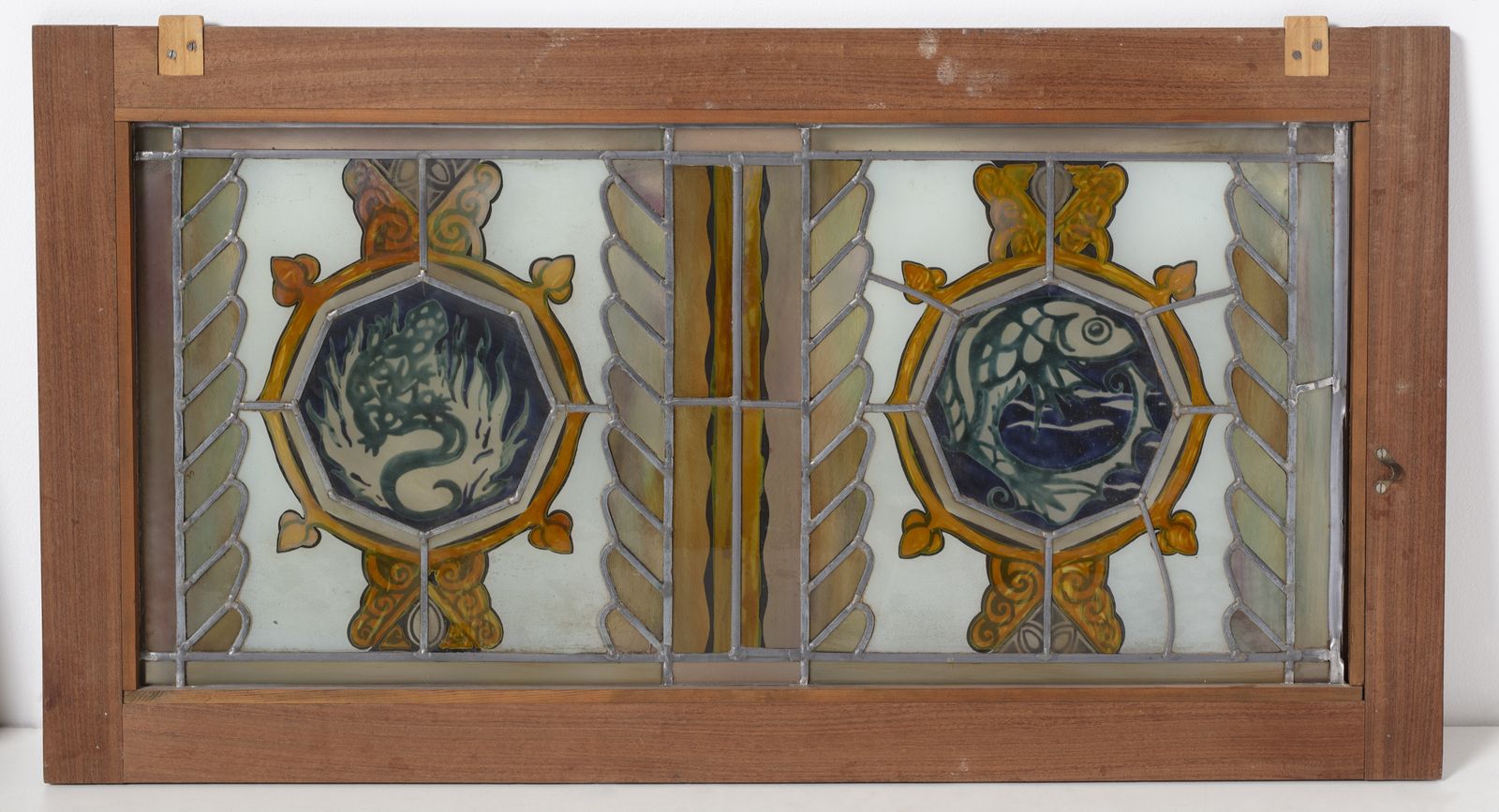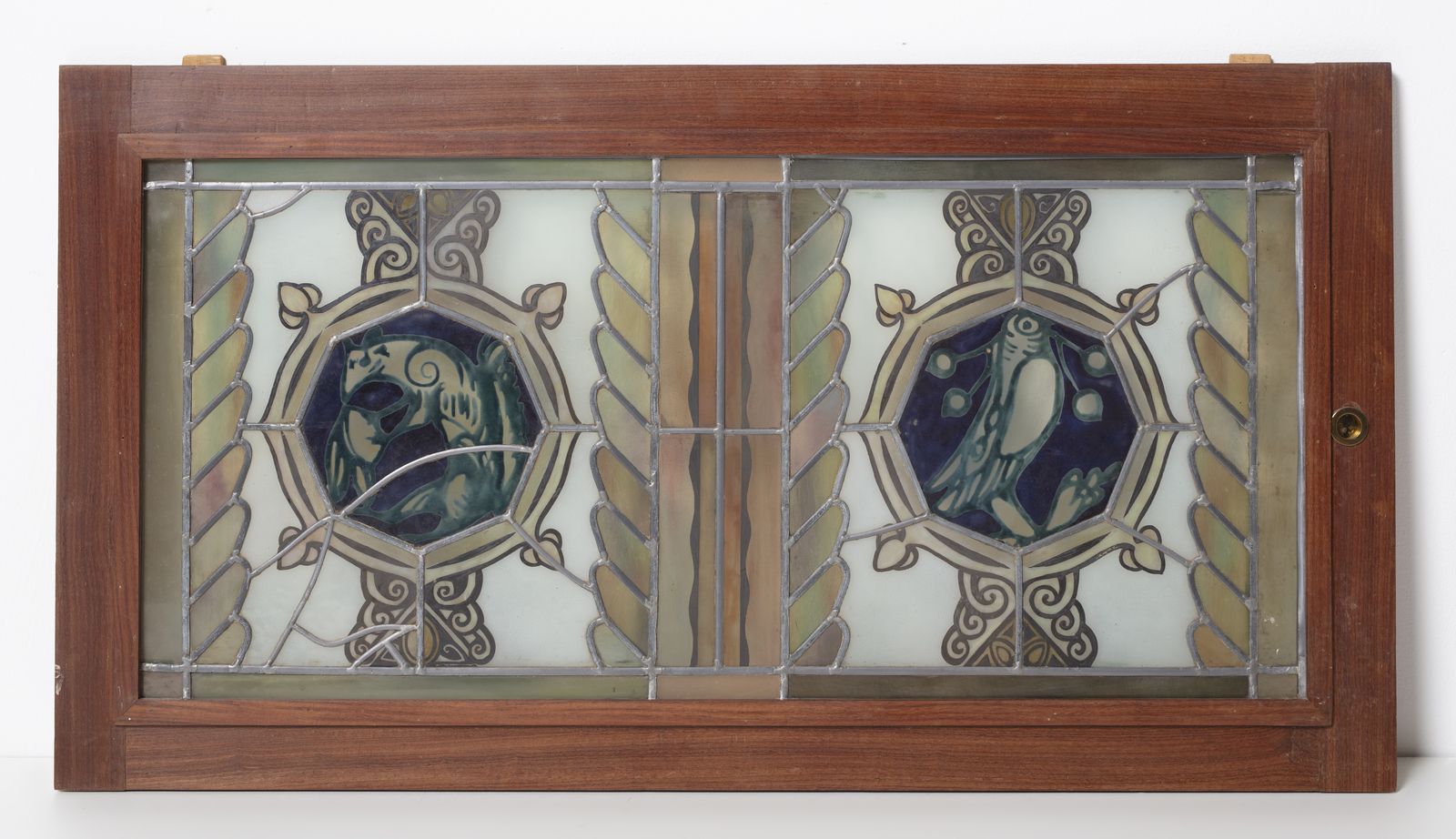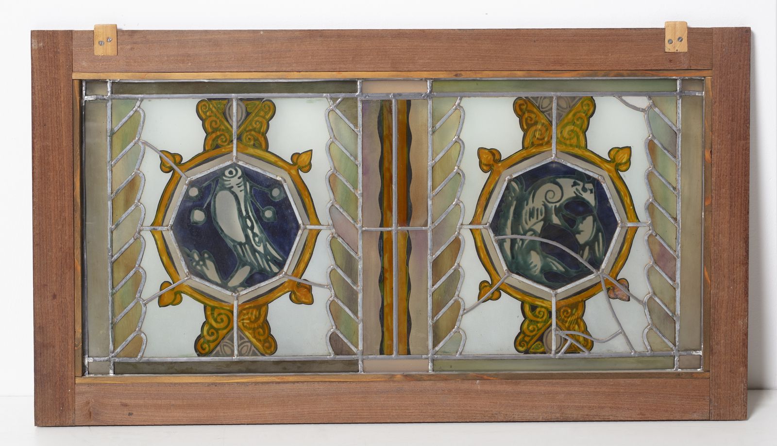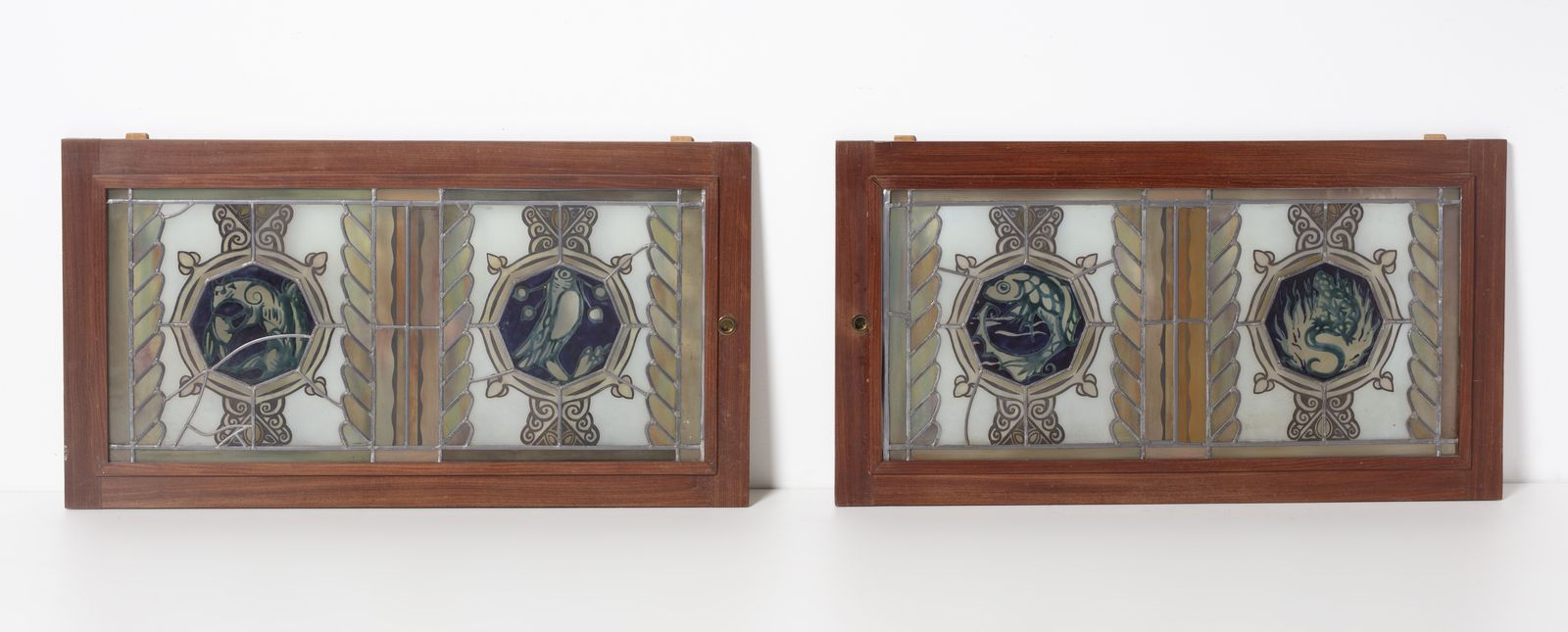 Nello stile di. Due vetrate policrome legate a piombo raffiguranti medaglioni con [..]