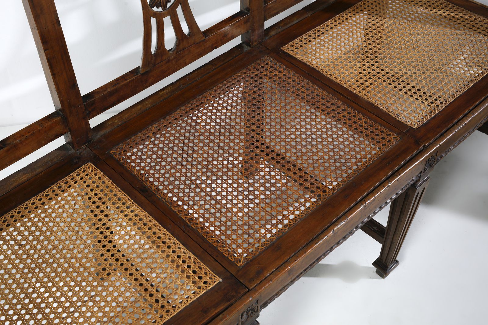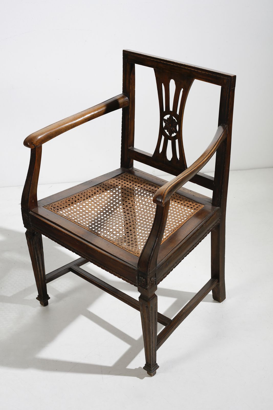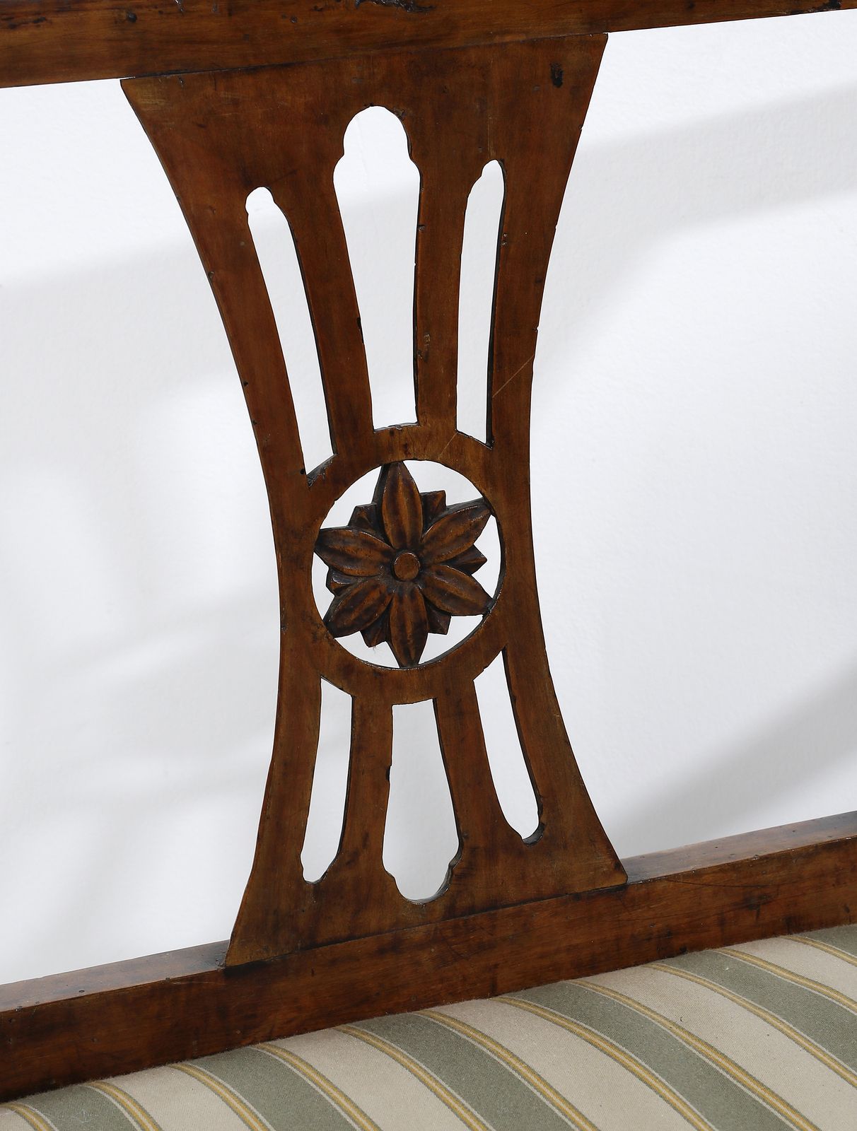 Salotto composto da due divanetti e coppia di poltrone in noce, schienali a giorno, [..]