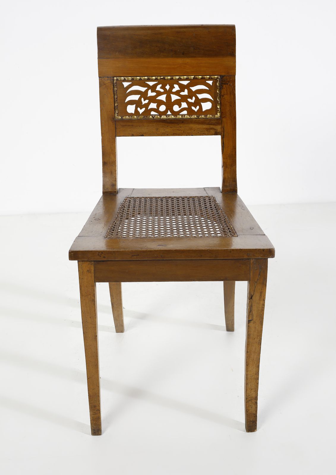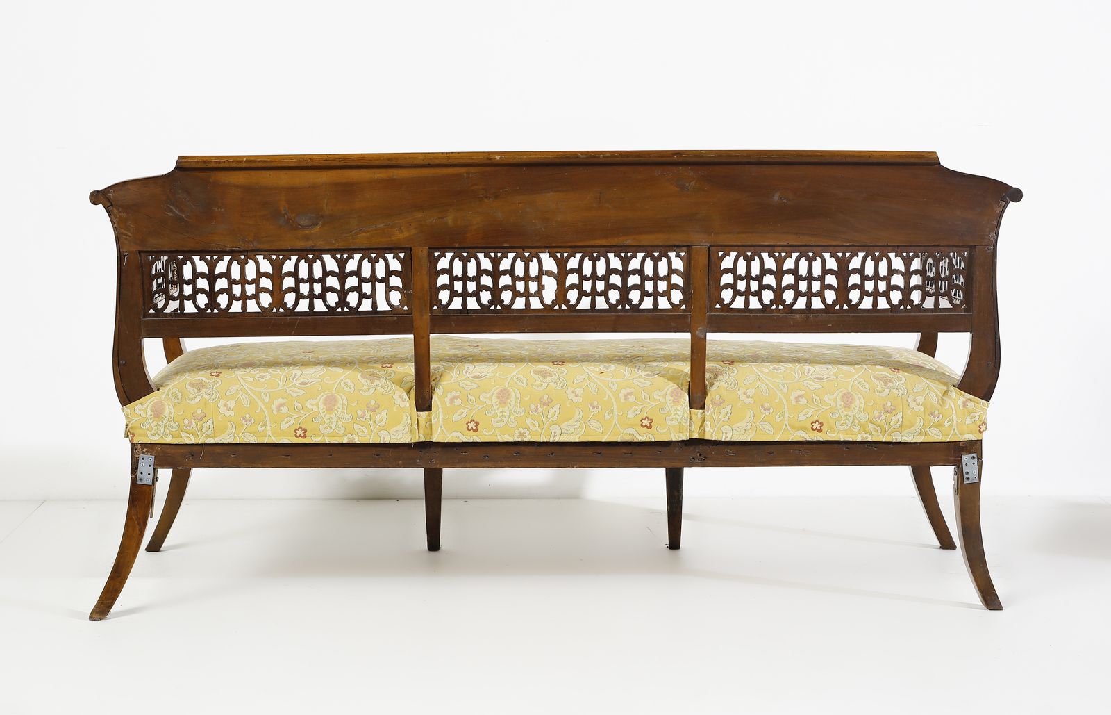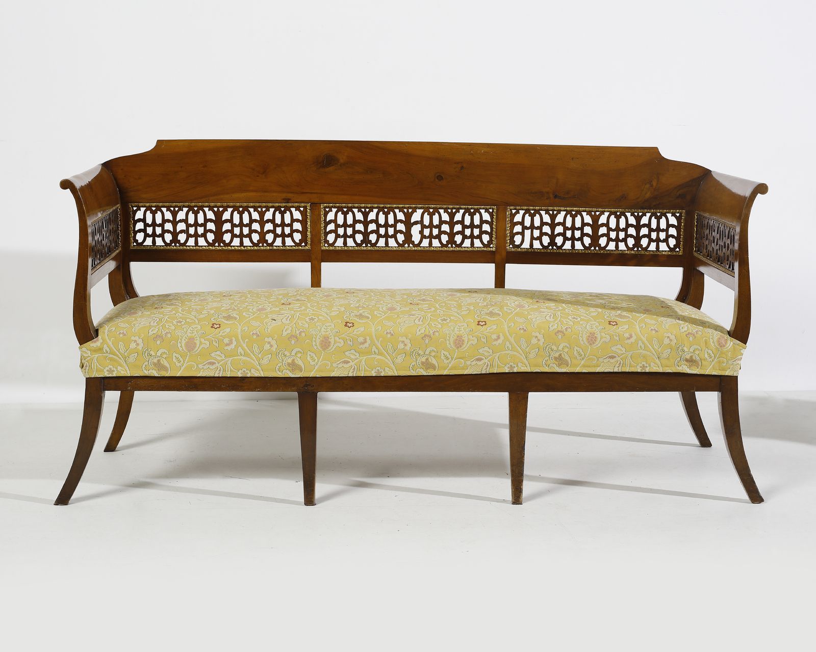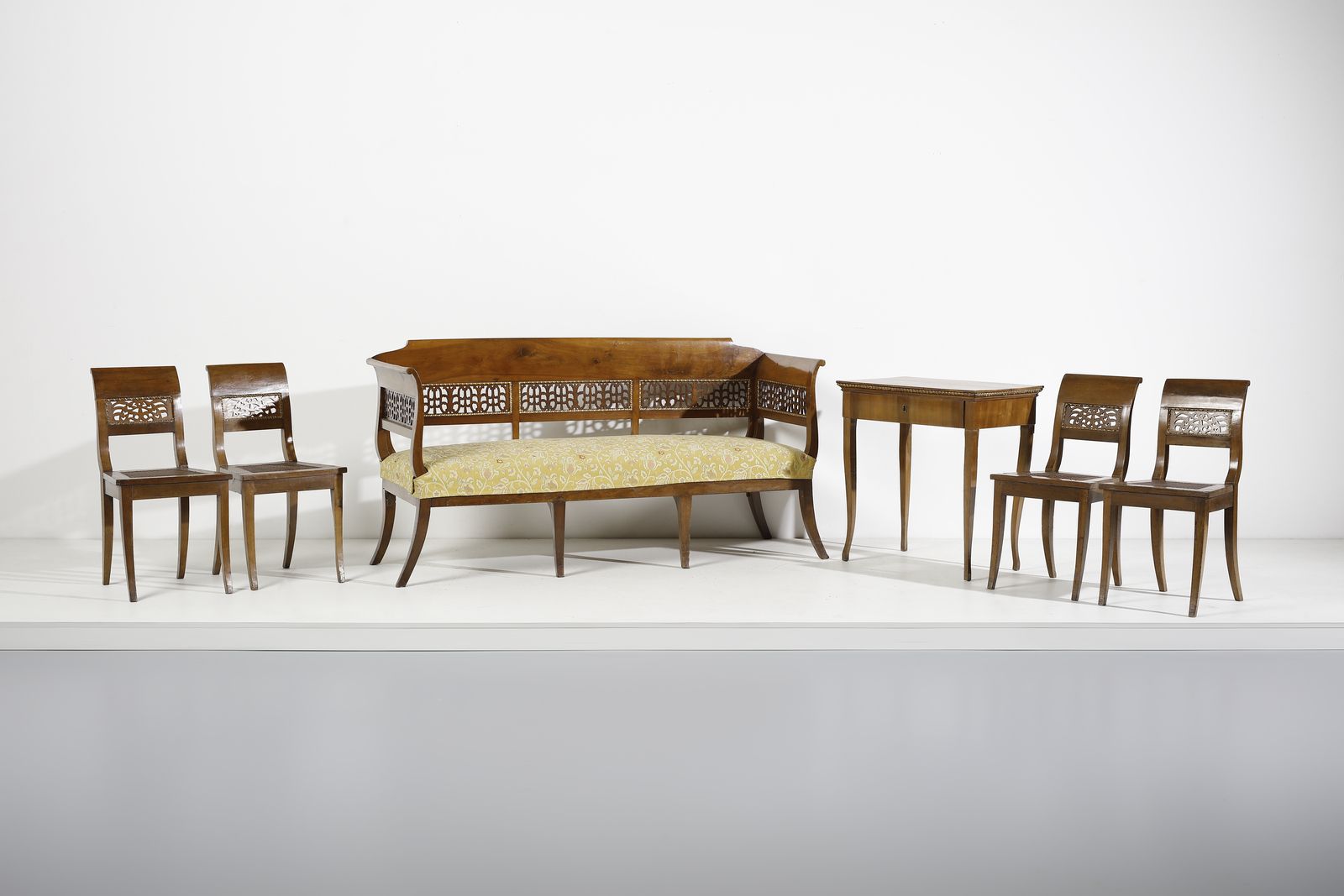 Salotto in noce intagliato e parzialmente dorato in stile Impero, composto da divanetto, [..]
