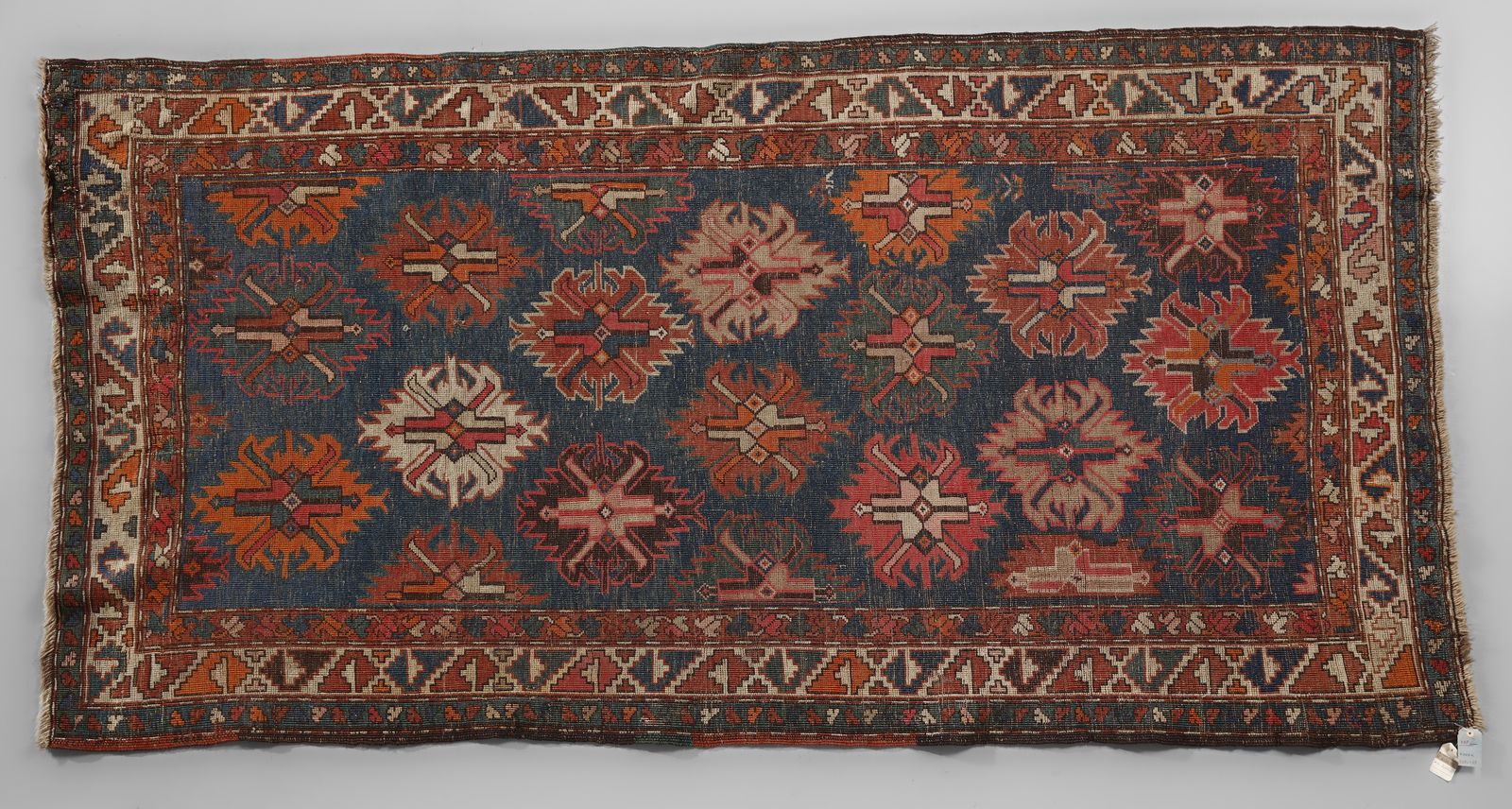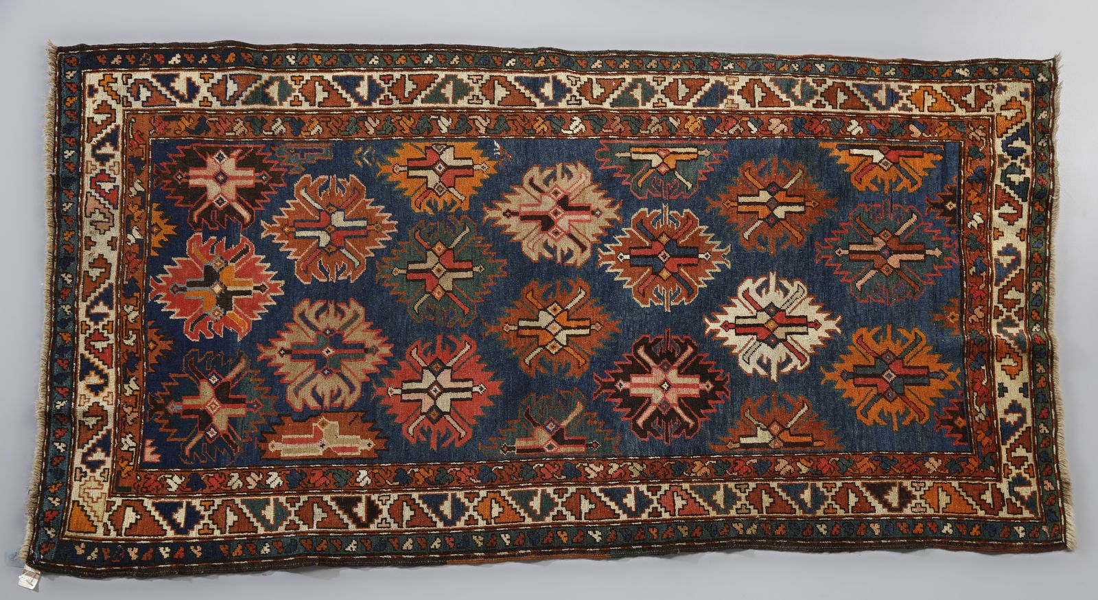 Tappeto con trama, ordito e vello in lana, con ripetuti medaglioni stilizzati di [..]