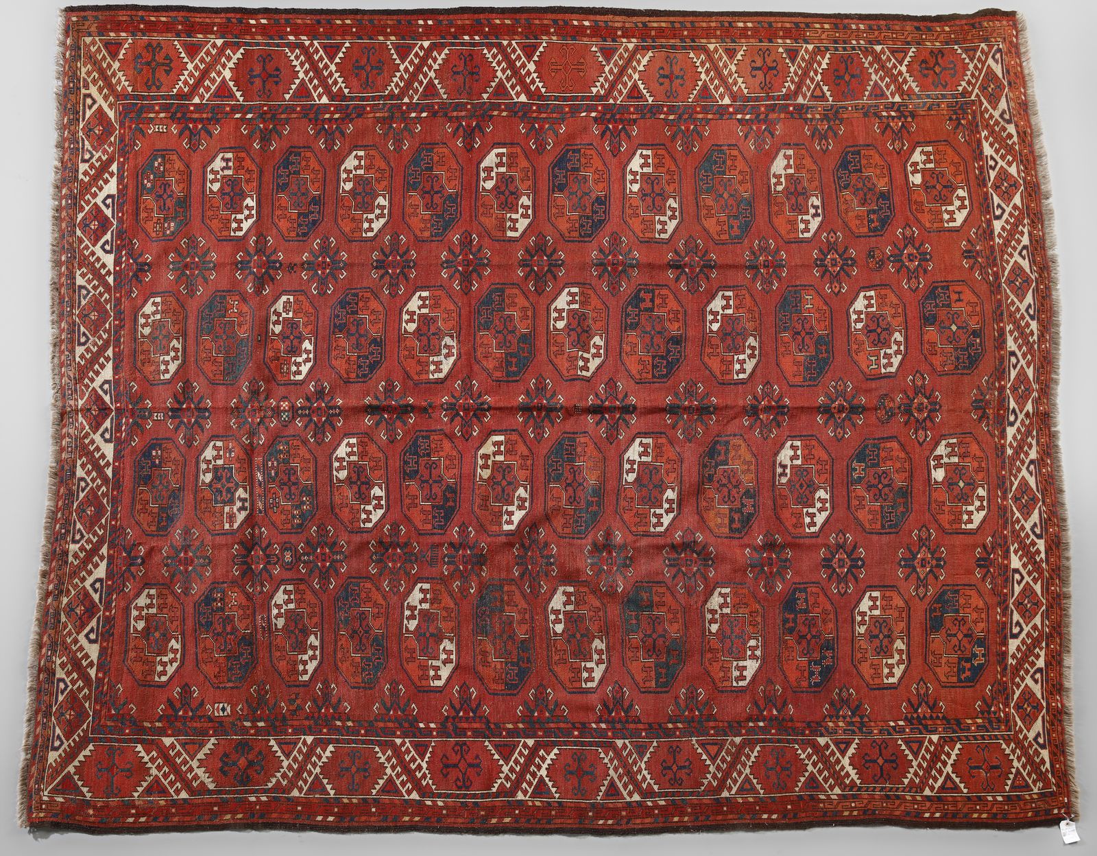 Tappeto turcomanno con trama, ordito e vello in lana, tribł Kyzyl Ayak, seconda [..]