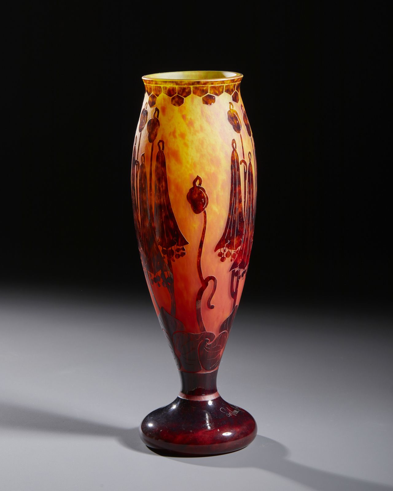 Vaso a balaustro in vetro finemente inciso all'acido con fiori di datura nei toni [..]