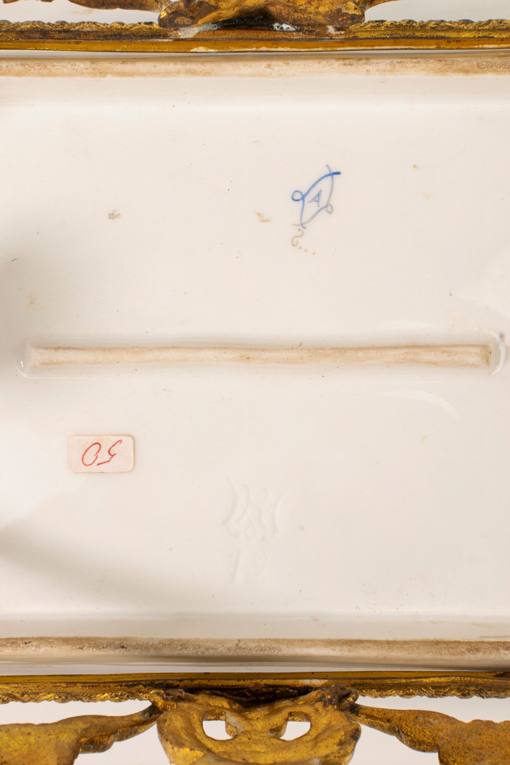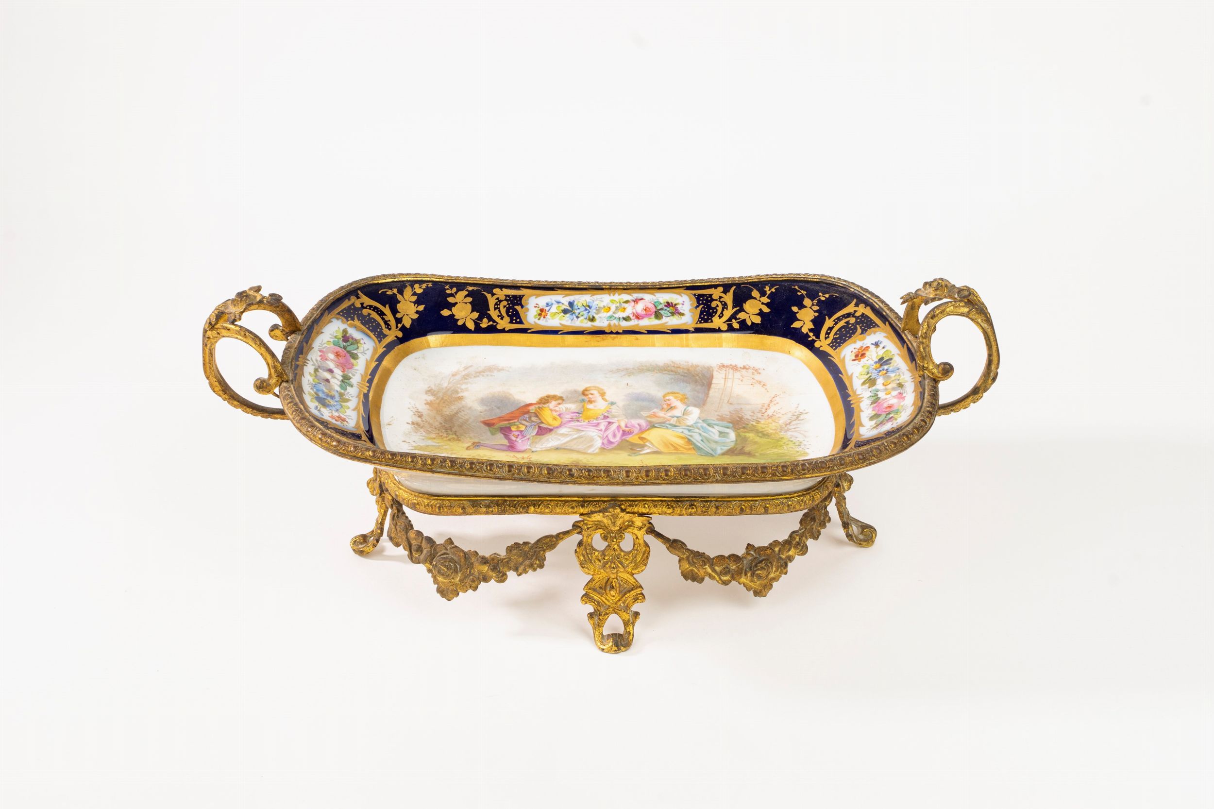 Alzata in porcellana policroma con montatura in bronzo dorato, manifattura di Sevres [..]