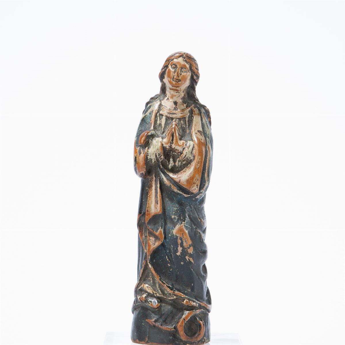 Antica scultura in legno policromo raffigurante Madonna di manifattura portoghes [..]