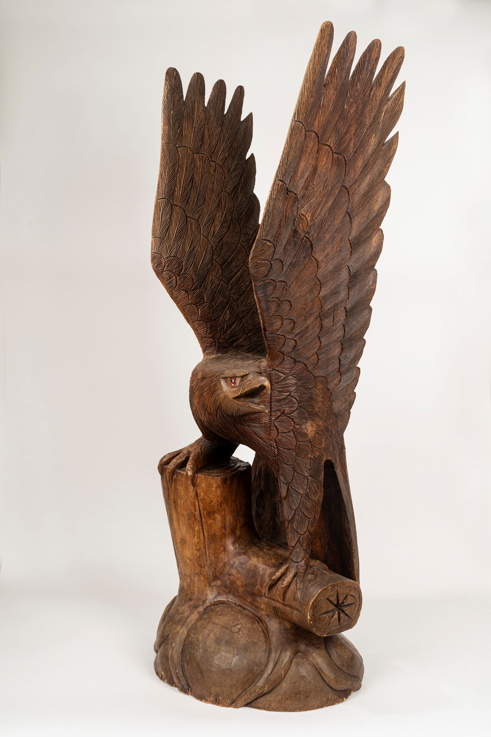 scultura in legno intagliato, cm 128,5 x 53 x 40