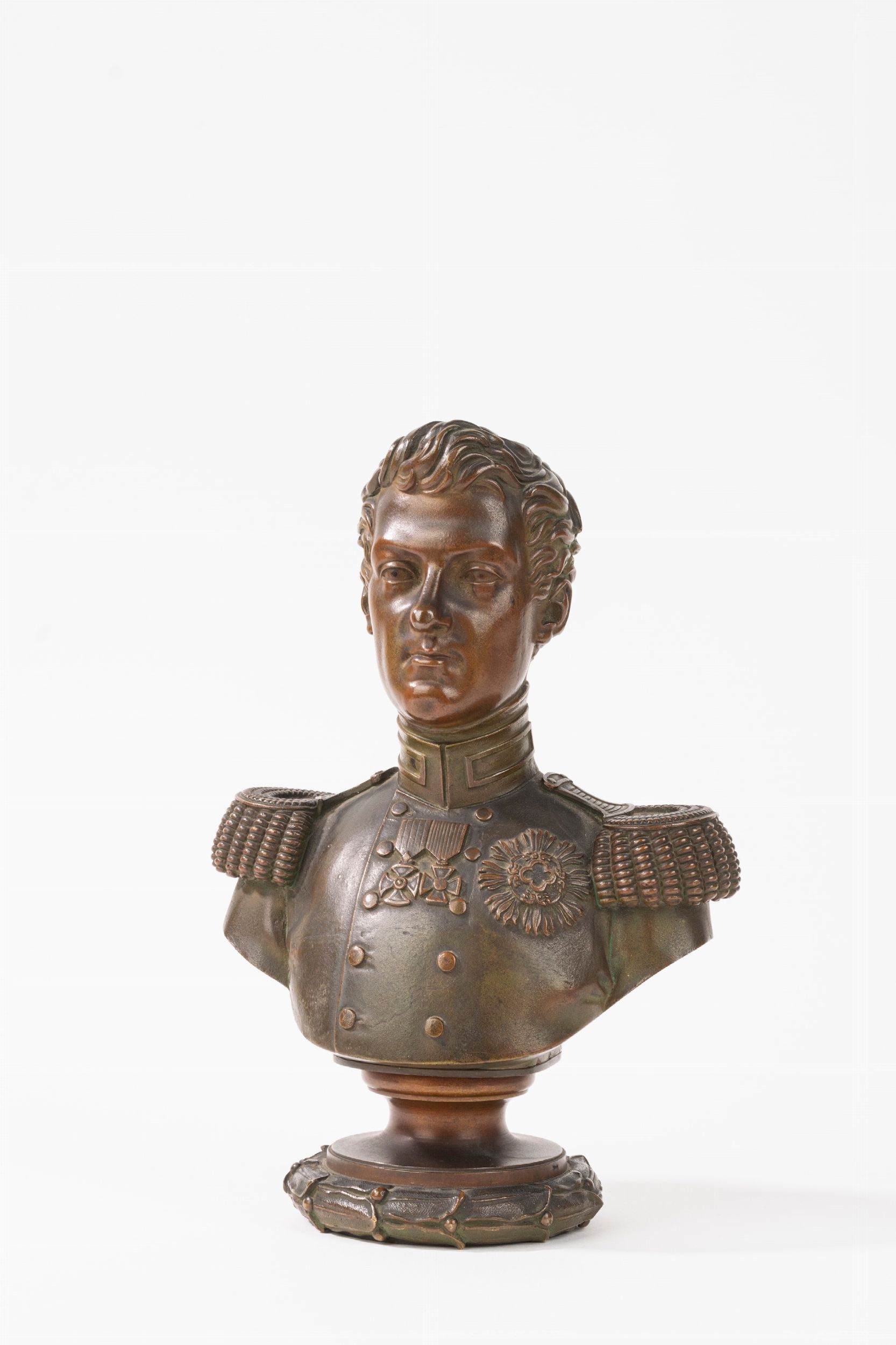 Busto in bronzo patinato di Carlo Alberto di Savoia in alta uniforme, secolo XIX