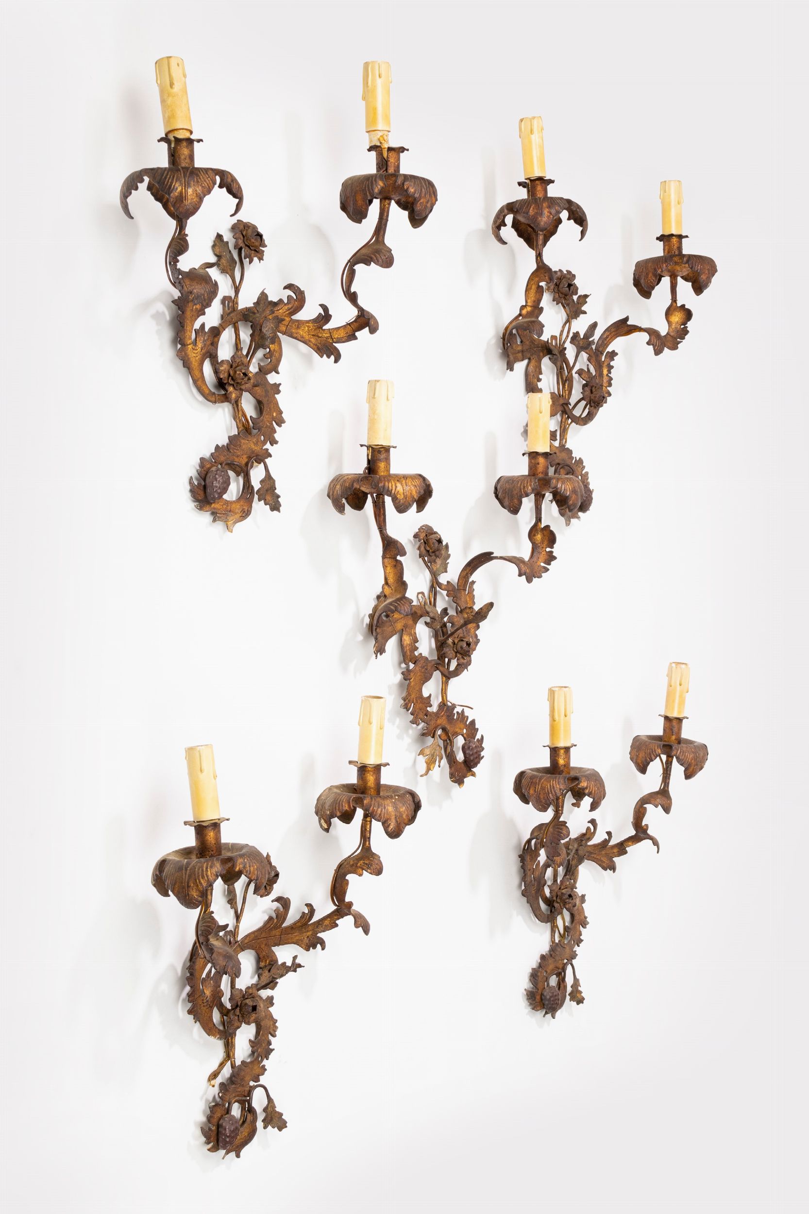 di forma mossa, decorate alla base a testa di araba fenice, bracci a racemi di foglie e fiori (difetti)