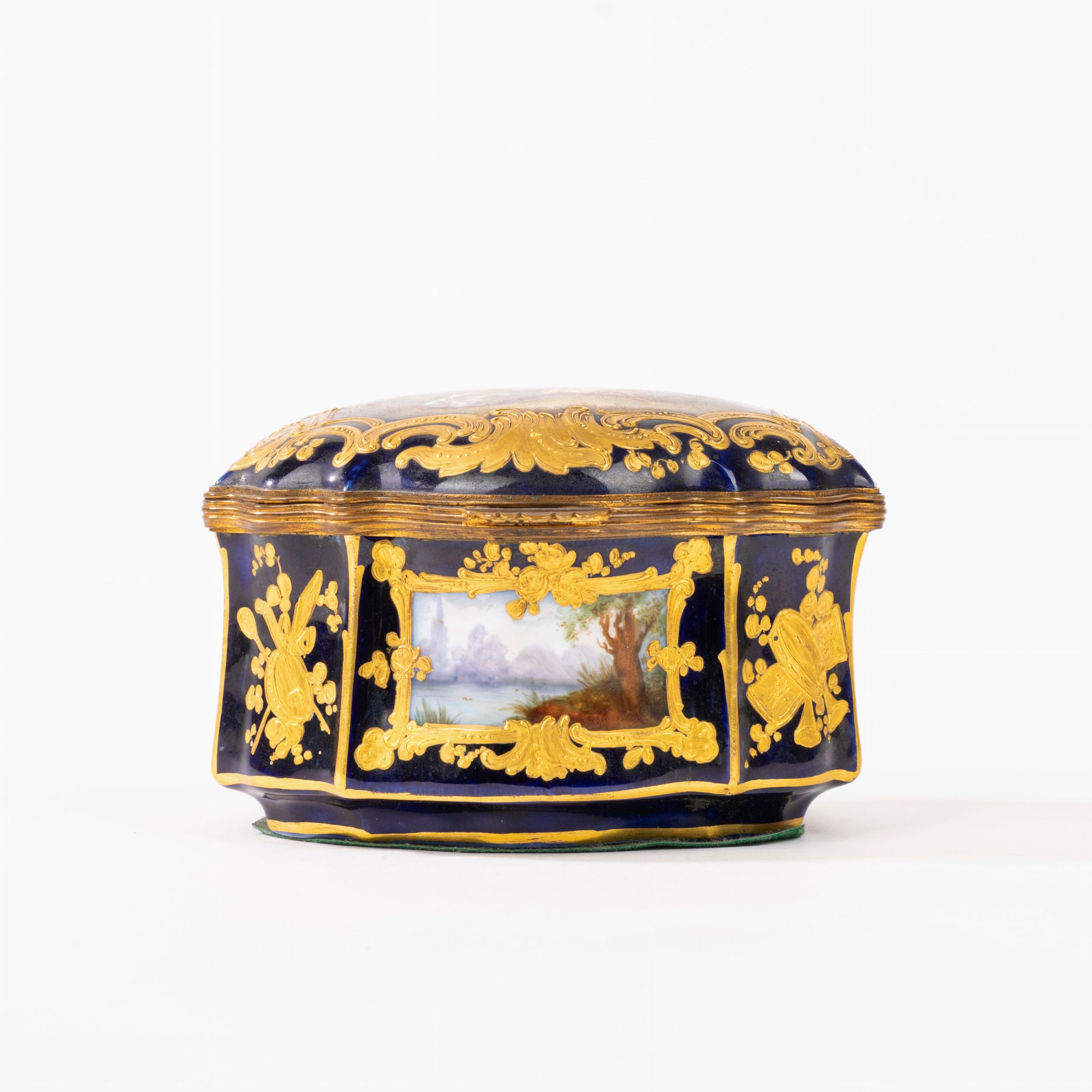 Cofanetto di forma mossa in porcellana policroma su fondo blu, manifattura di Sèvres, [..]