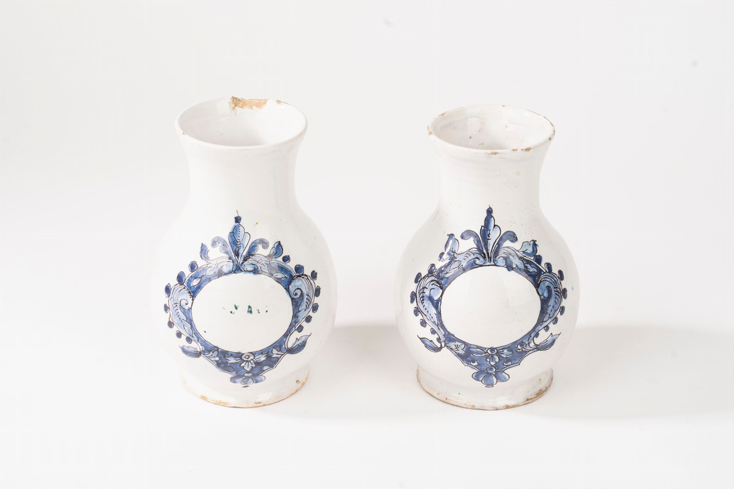 corpo decorato da cornice a rocaille nei toni del blu di cobalto difetti