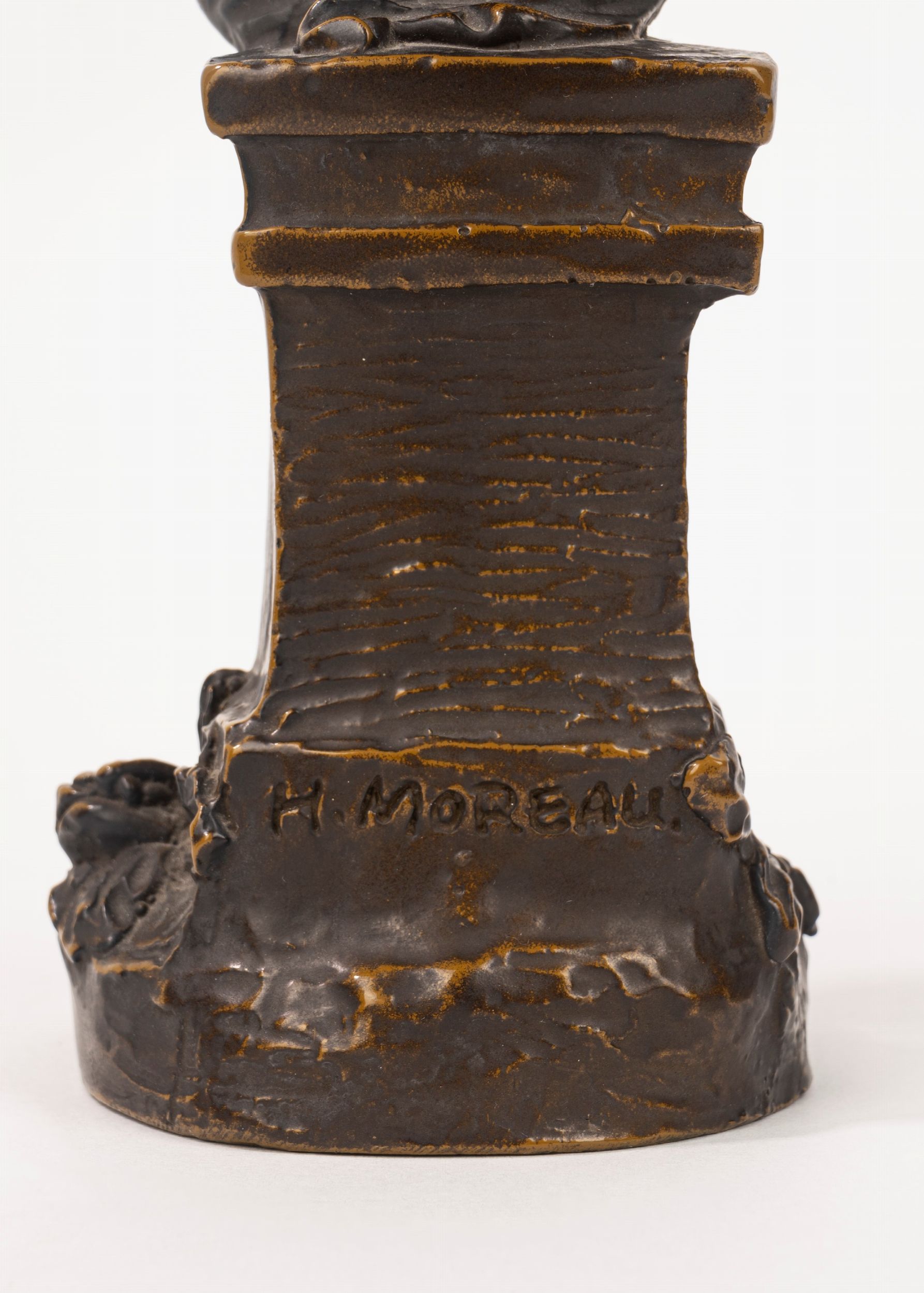 scultura in bronzo a patina scura, cm 23,5 x 18 x 7