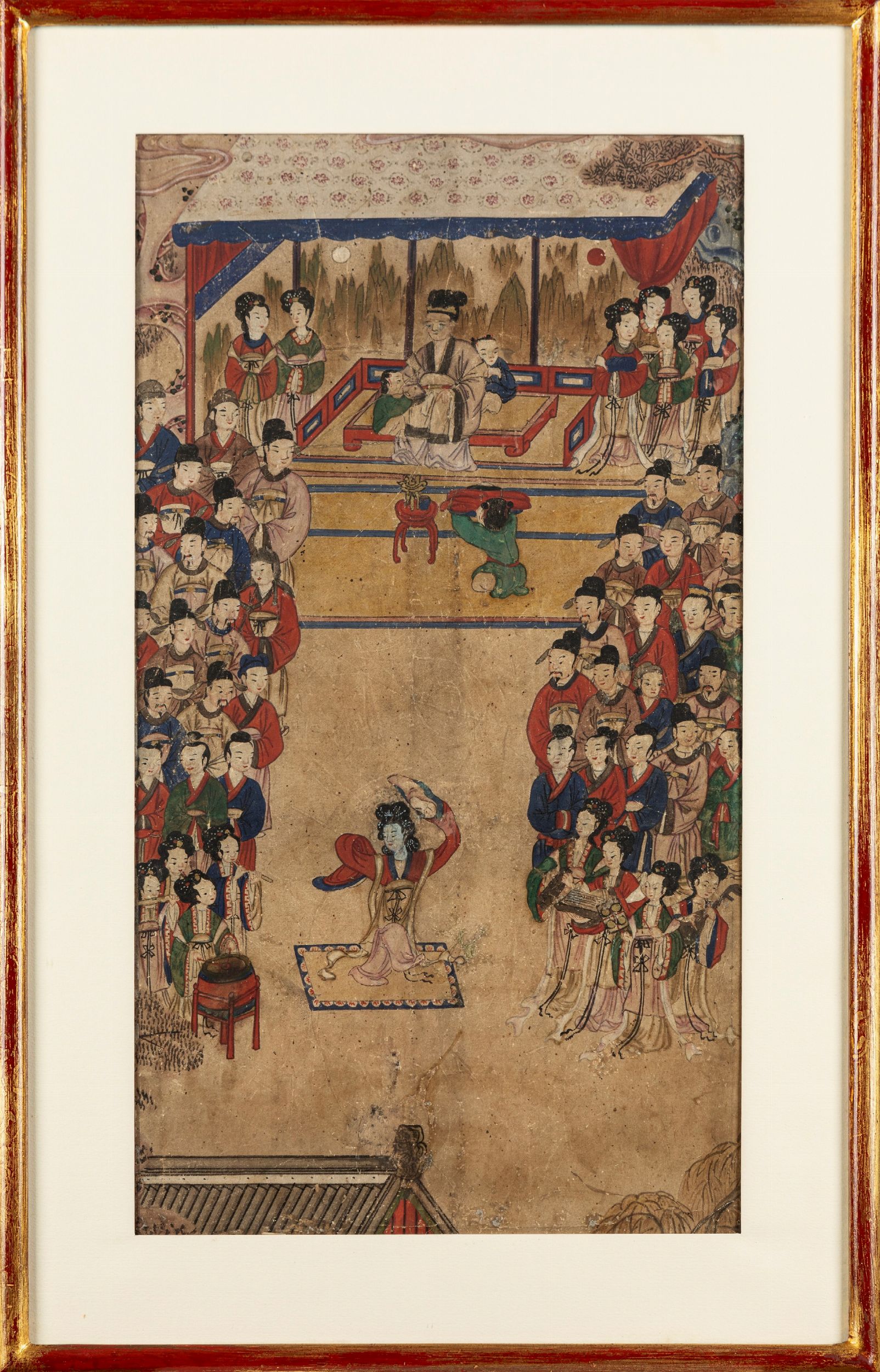 Cina, secolo XIX raffigurante danzantrice tradizionale davanti corteo con dignitari e attendenti.