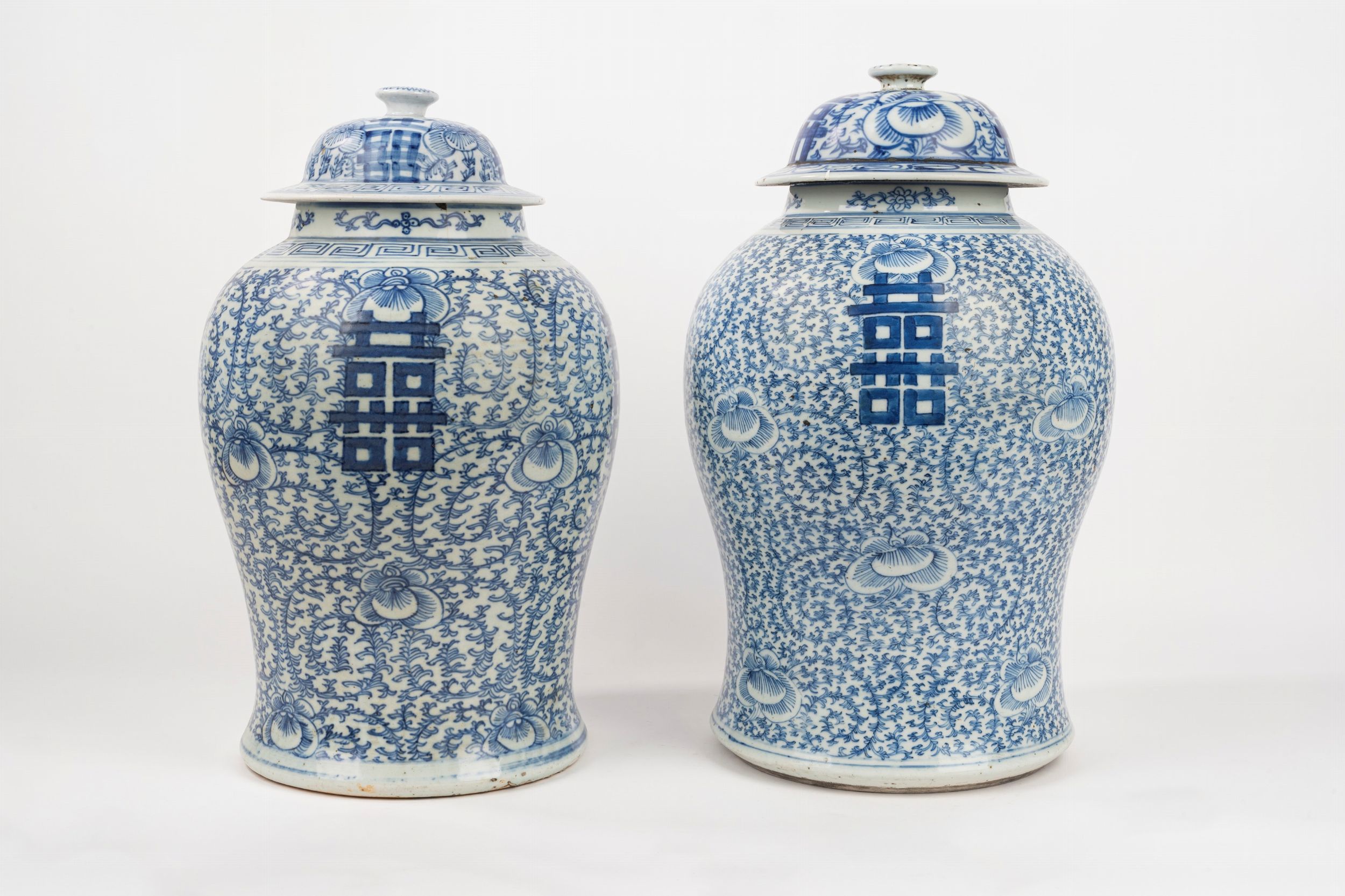 Due vasi in porcellana bianca e blu, Cina secolo XIX -XX
