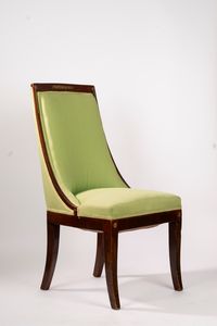 cm 46x93x49,5 schienale squadrato, gambe a sciabola, decorata da applicazioni in bronzo a motivo floreale, imbottita [..]