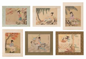 altezza cm 11 e cm 8 una rotta una con coperchio decorate a motivi floreali e scene galanti
