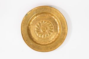diametro cm 38 il cavetto sbalzato a baccellature, la tesa incisa a motivi stilizzati lievi difetti