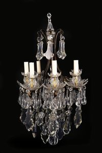 h tot cm 76 struttura a cesto decorata da pendenti in cristallo a goccia sferica, sfaccetta, sagomata e fiori, [..]