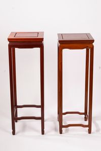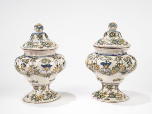 altezza cm 59 e cm 59,5 uno con anse sagomate zoomorfe decorato con fogliame e fenice, l'altro con anse sagomate [..]
