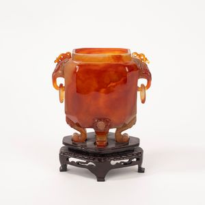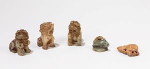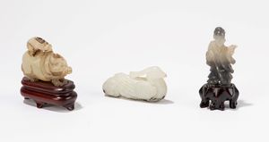 l max cm 5,5 Cina, XX secolo Raffiguranti un coniglio in agata e tre felini in giada.
