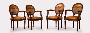 cm 56x96x43 schienale in cannetè, braccioli terminanti a ricciolo, gambe scanalate e rastremate con motivo a [..]