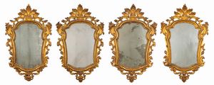 cm 105x63 di forma sagomata, in legno intagliato e dorato a volute fogliate e fiori (difetti e restauri)