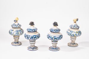 h cm 28 Manifattura del secolo XVIII/XIX corpo a balaustro con decoro a volute fogliate nei toni del blu cobalto [..]
