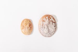 cm 34,5 x 50 Giappone, inizio secolo XX raffiguranti due dame in un paesaggio con alberi di ciliegio; e un dignitario [..]
