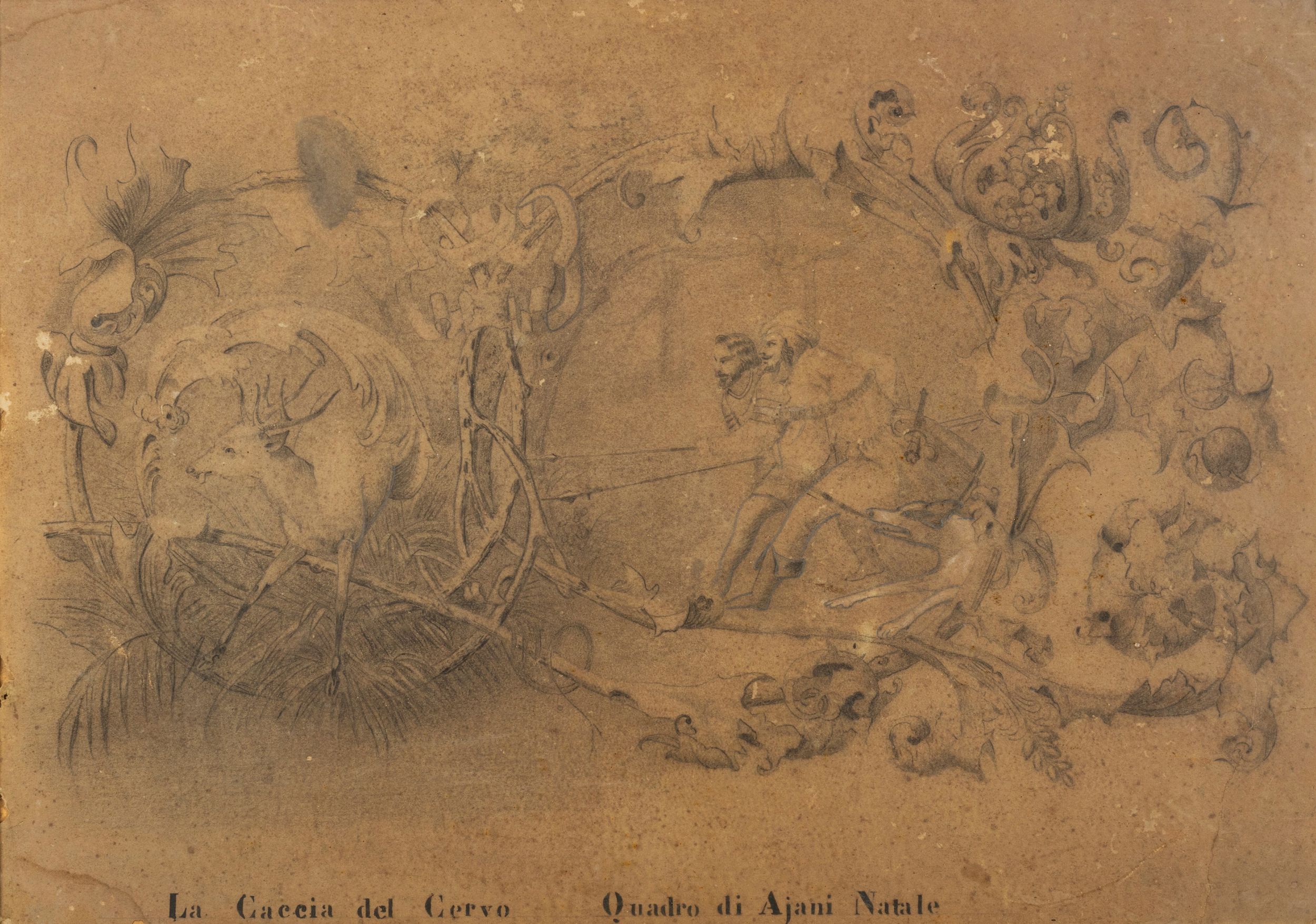 iscritto in basso al centro: La caccia del cervo - Quadro di Ajani Natale