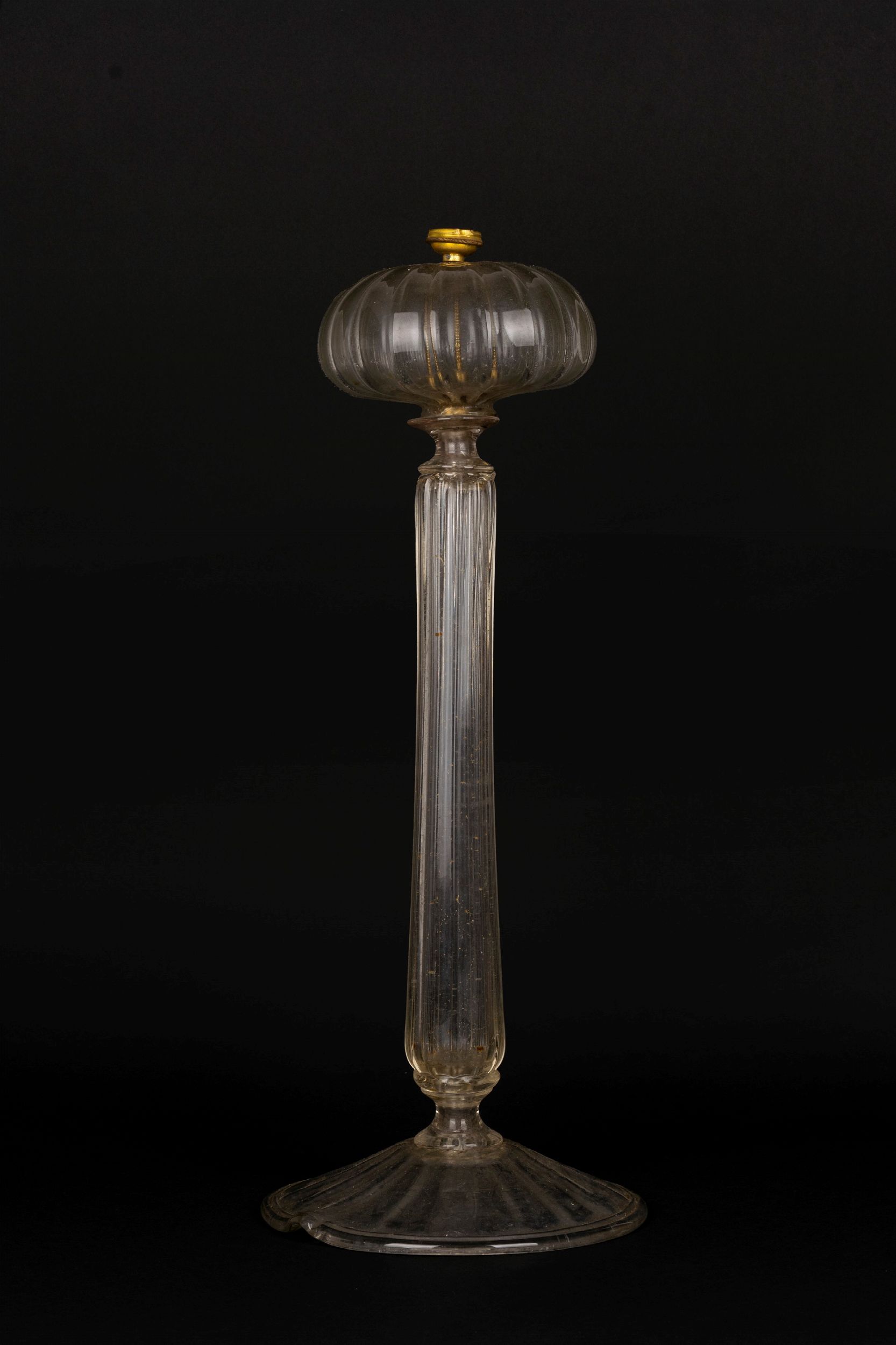 secolo XX in vetro incolore e costolato, fusto a colonna su base circolare
