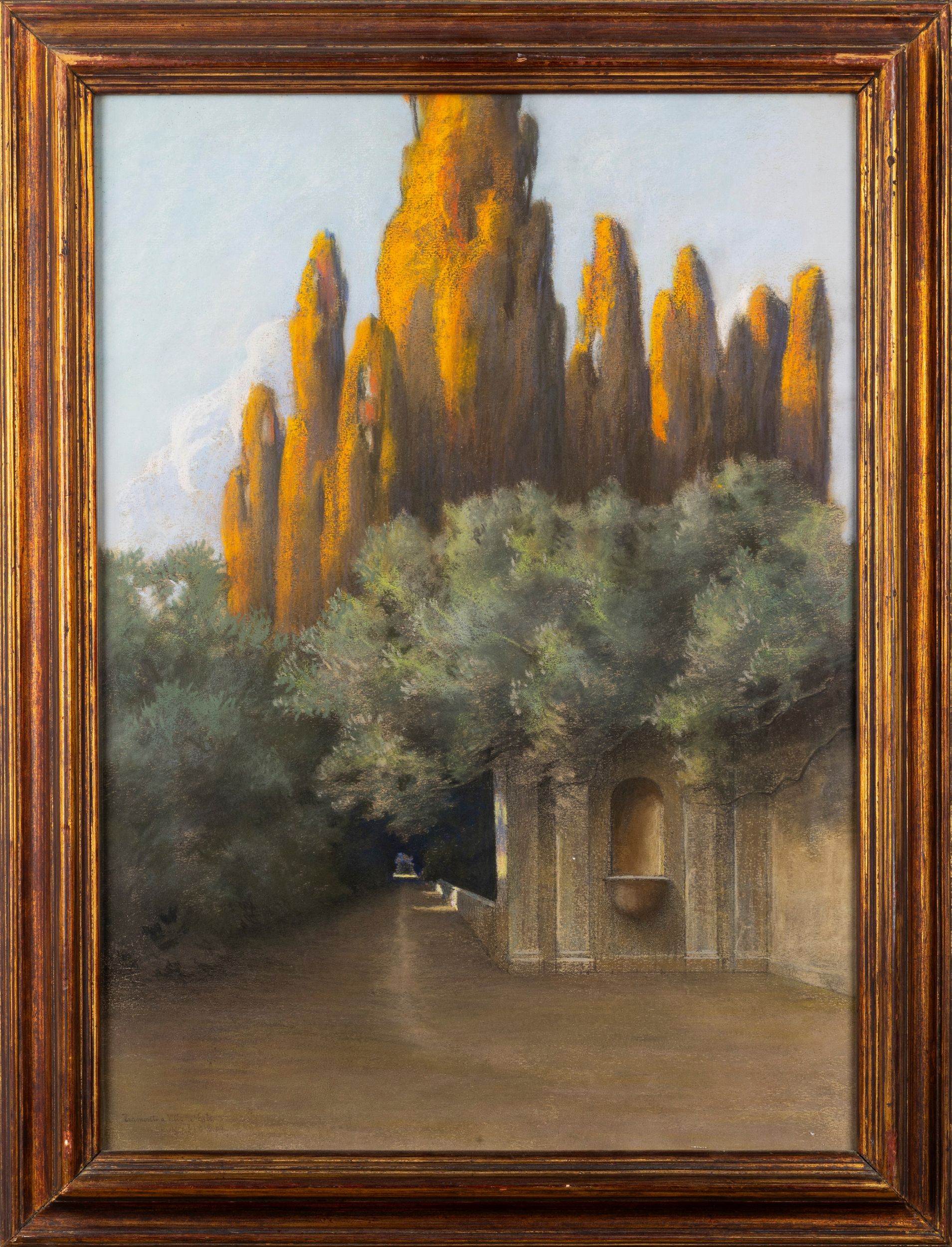 cm 67 x 48 (Tivoli); cm 54,5 x 71,5 (Caprarola) un pastello su carta raffigurante 'Tramonto a villa d'Este', intitolato e firmato in basso a sinistra G. Bruno Ferrari un'incisione acquerellata a mano raffigurante veduta di Caprarola, con firma parzialmente leggibile in basso a destra Cassar(?) f.