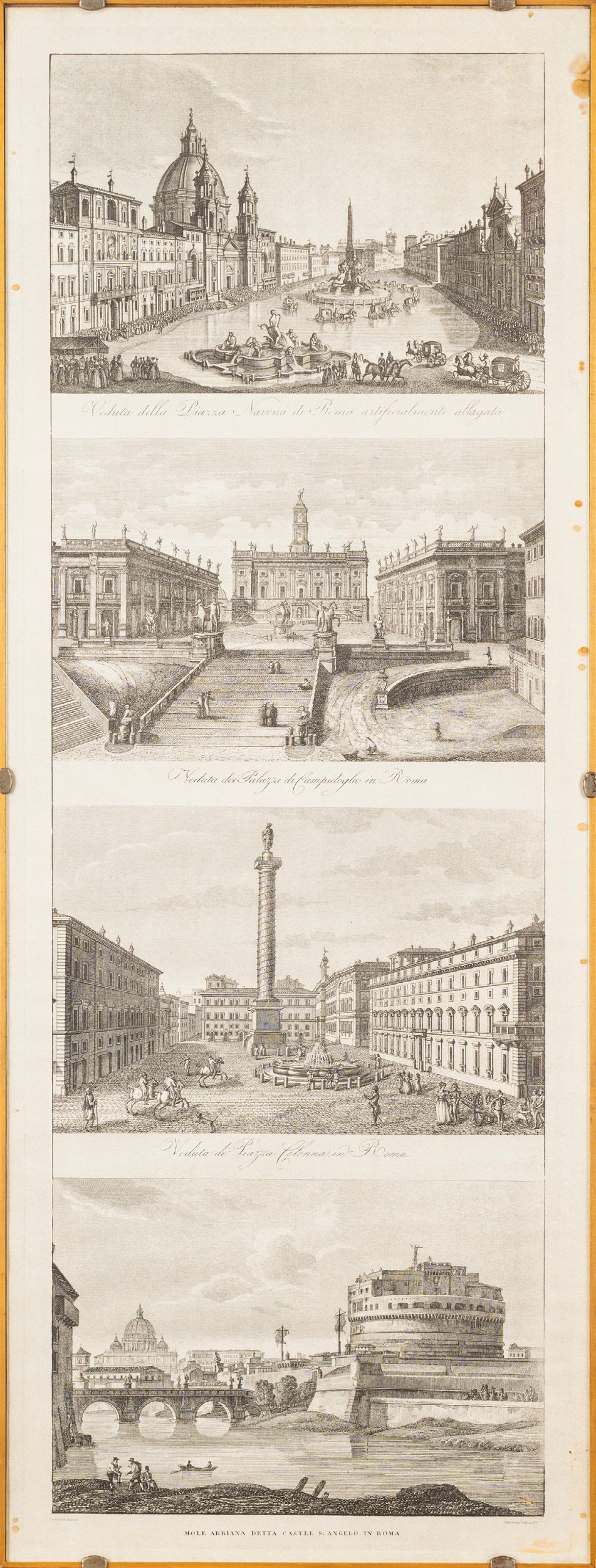 cm 74,5 x 98 (piazza Bocca della Verità ); cm 72 x 97 (veduta del porto di Ripa Grande); cm 87,5 x 33 (quattro vedute)