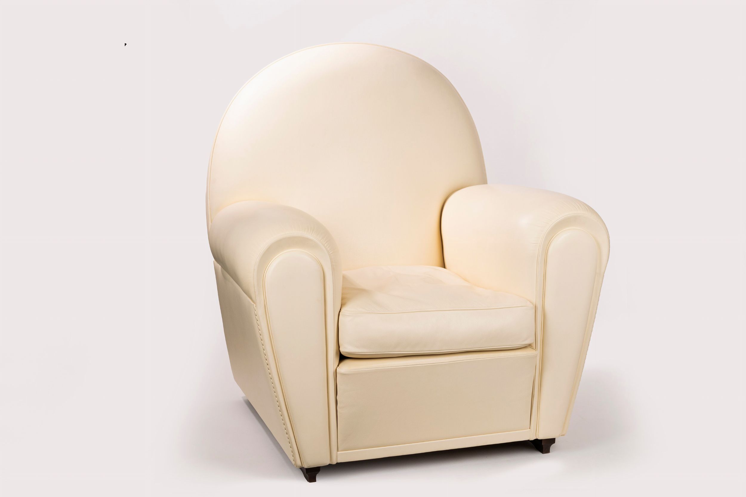 modello del 1930 in pelle bianca, targhetta al retro con numero di esemplare accompagnata da certificato di origine e garanzia