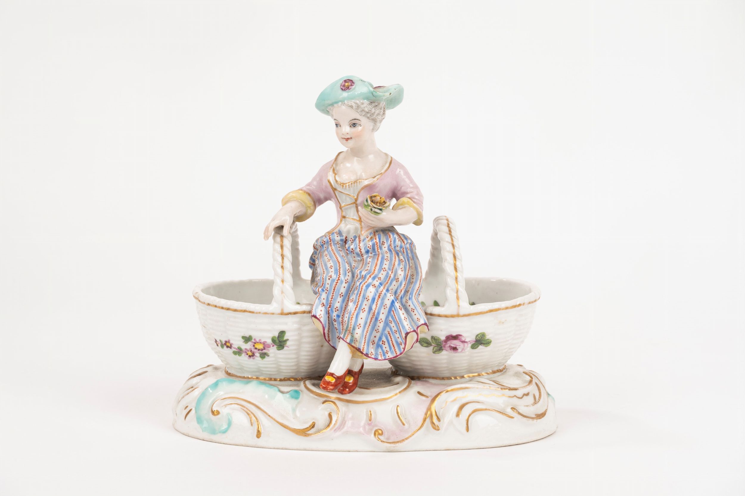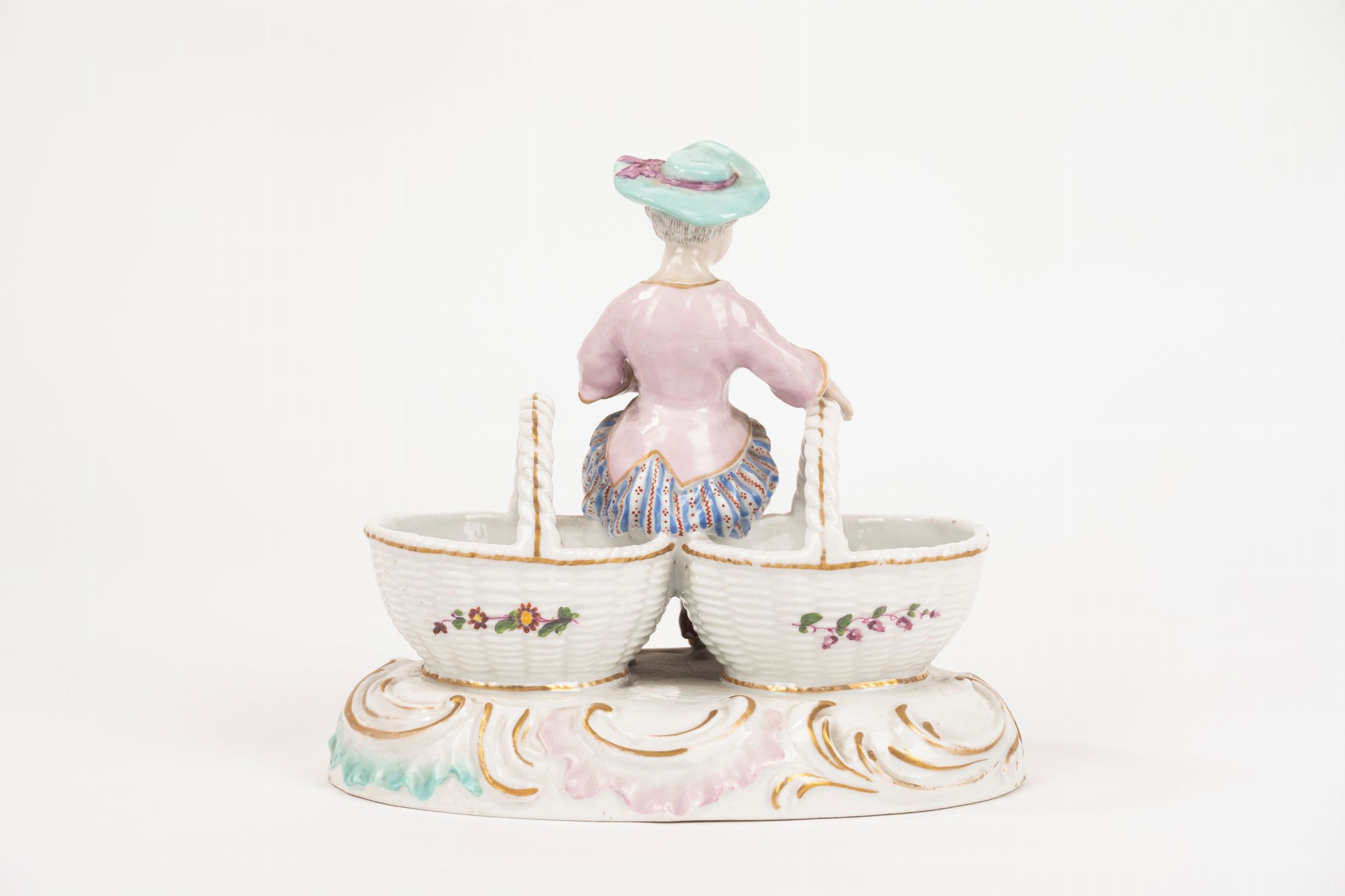 raffigurante giovane contadinella con fiori numero inciso in pasta JC448 e marchio sotto la base