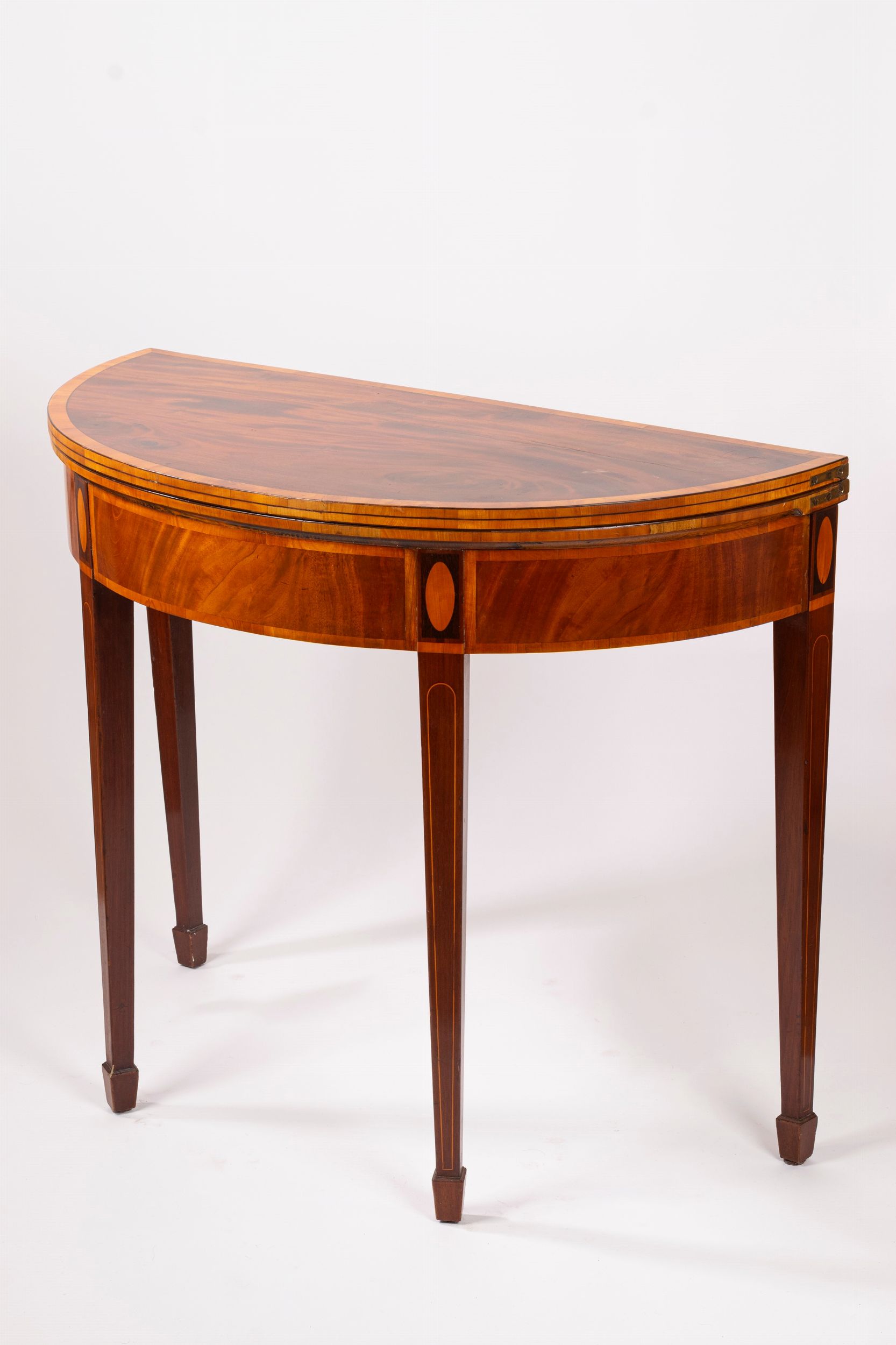 Tavolo da parete demi lune con piano a libro, secolo XIX